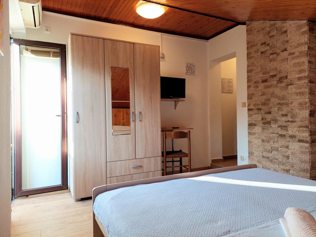 PANSION KLAUDIJA, with a family tradition of more than 40 years, offers accommodation in 14 fully equipped rooms: shower, toilet, balcony (12 rooms with sea view), central heating, telephone, SAT/TV and air conditioning. Other facilities include: - private parking, - lounge with SAT/TV, - safe, - restaurant with bar and garden terrace, - beautiful garden with fountain. - free internet (Free WIFI) Our guests, as well as all other visitors, have at their disposal a restaurant with 80 seats and an open terrace. In a pleasant atmosphere with friendly staff, they can enjoy many specialties of local and international cuisine.