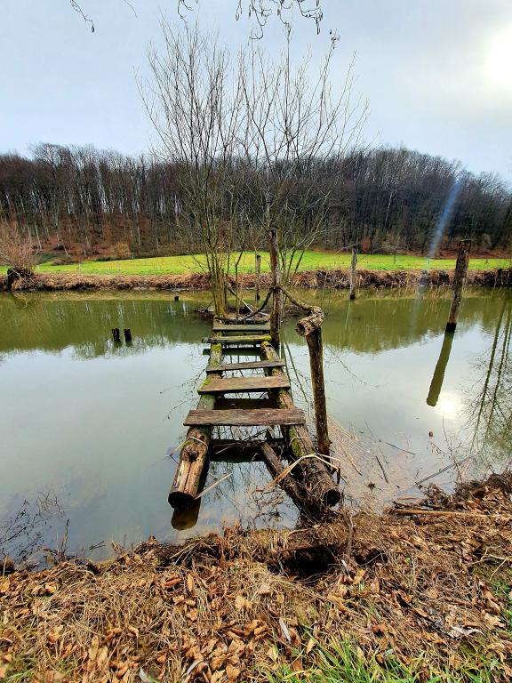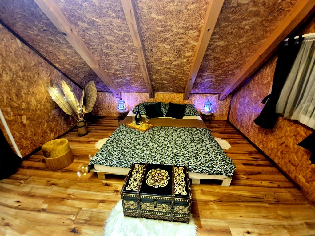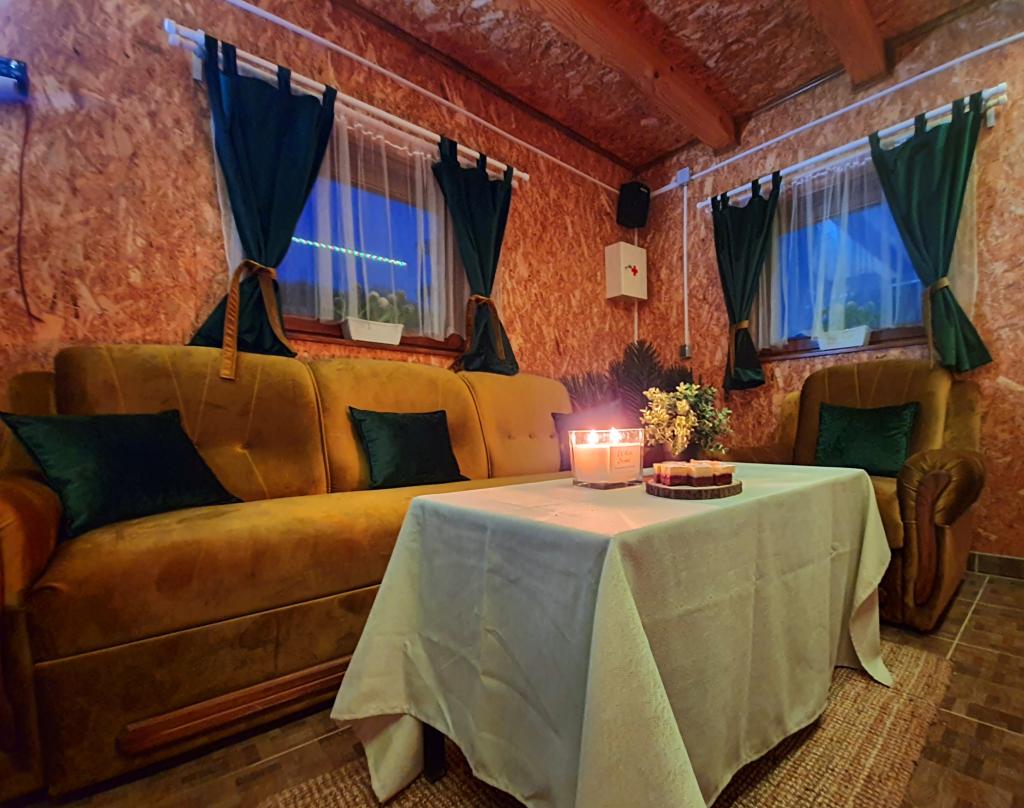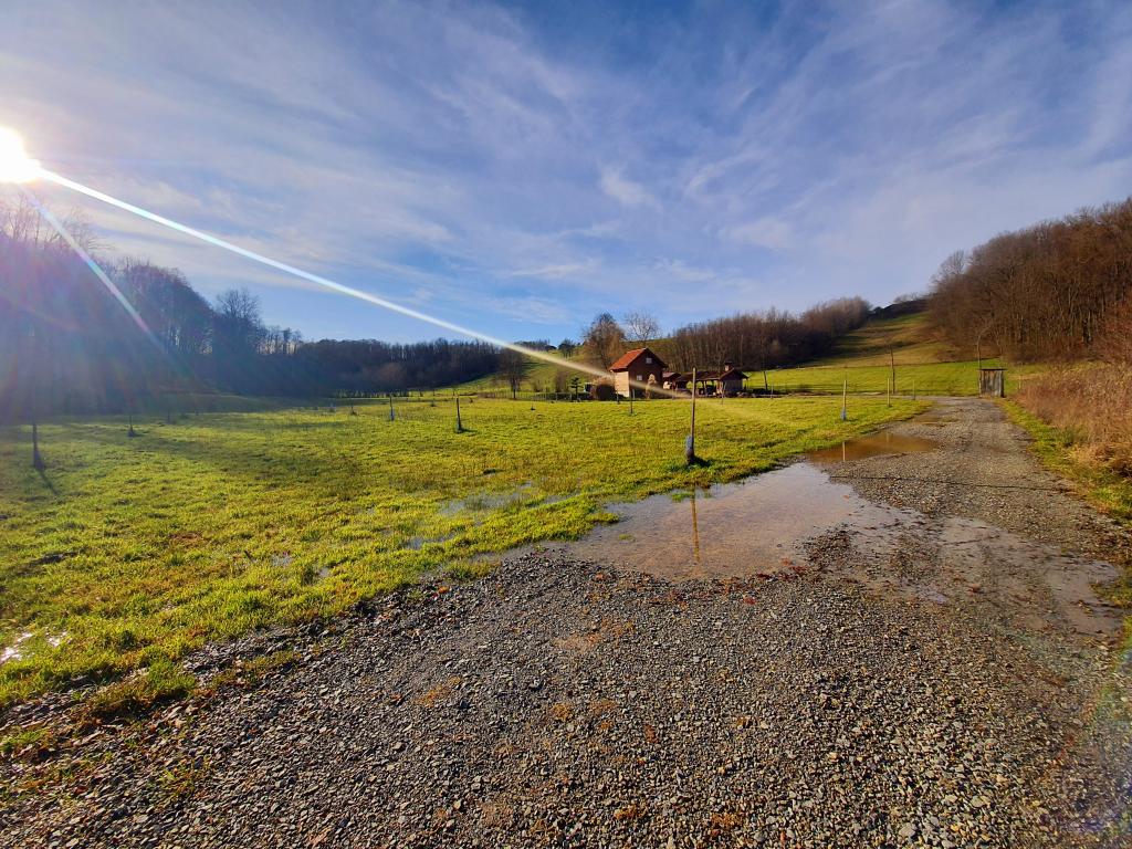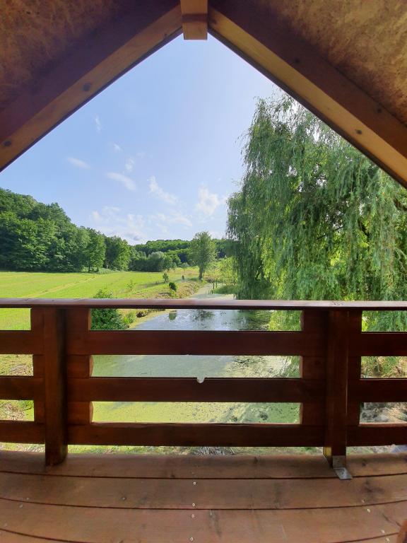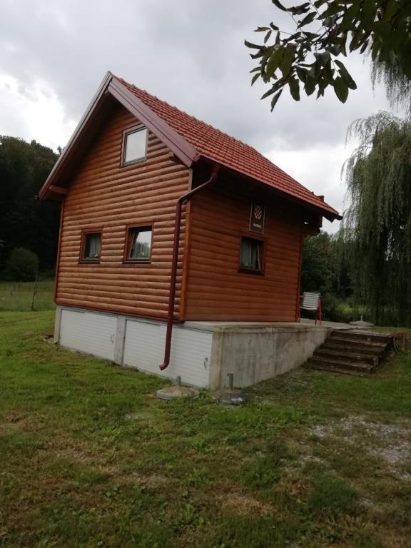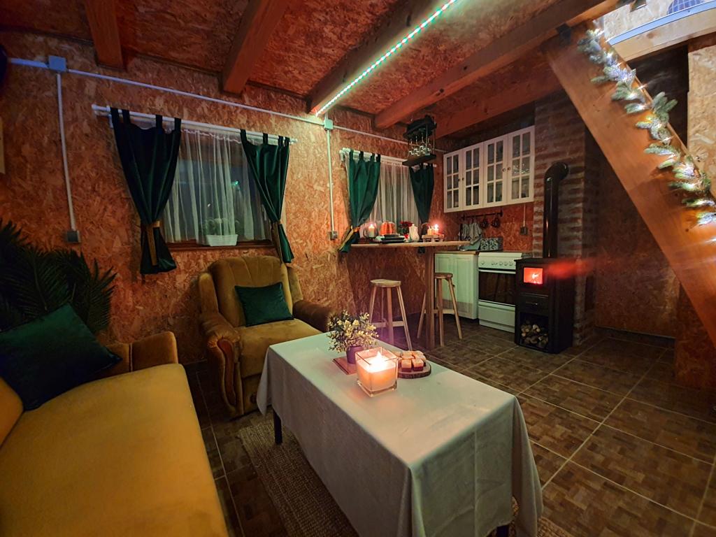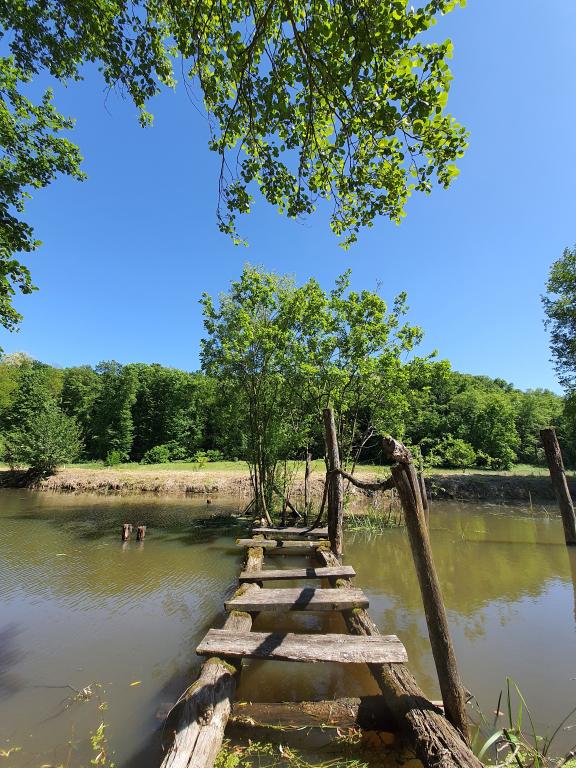 The oasis of peace includes a wooden holiday cottage in the town of Dioš, only 7 km from the town of Daruvar. The house consists of a kitchen connected to the living room, a bedroom in the attic with a balcony, and a toilet. The shower is outside and is right next to the house. Capacity for 5 people - in the bedroom there is a double bed for two people and one extra bed, in the living room there is a sofa bed for two more people. In front of the house there is a spacious terrace with a view of the lake. There is also a fishing boat with space for socializing or celebrations at guests' disposal. Pets are also allowed. The house is located in a secluded area, surrounded by a meadow and forest, and offers the right opportunity to relax for guests who want silence and nature.