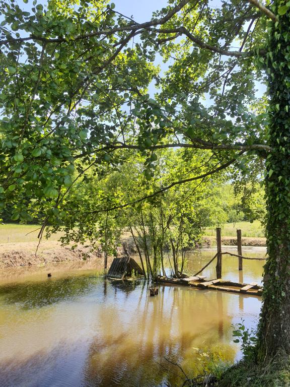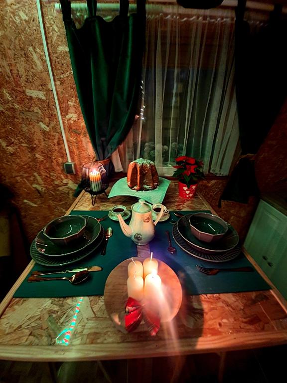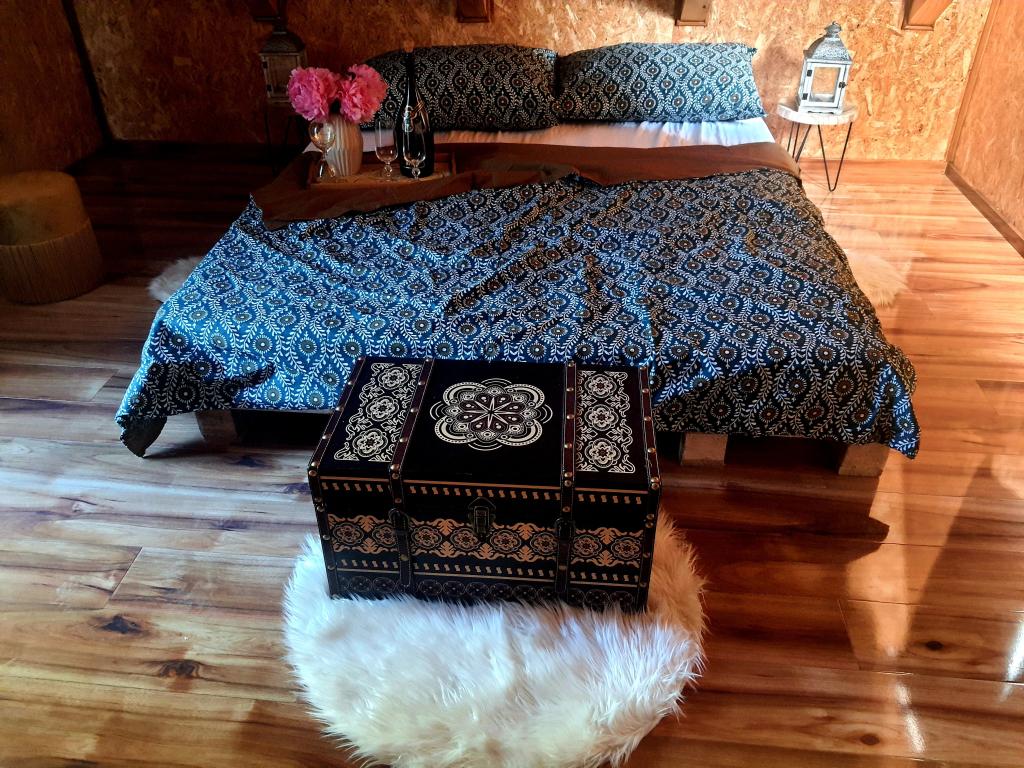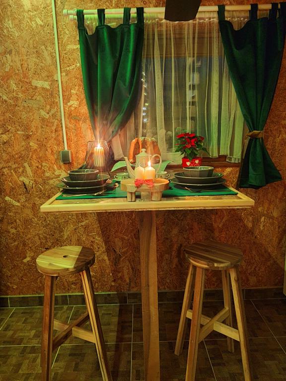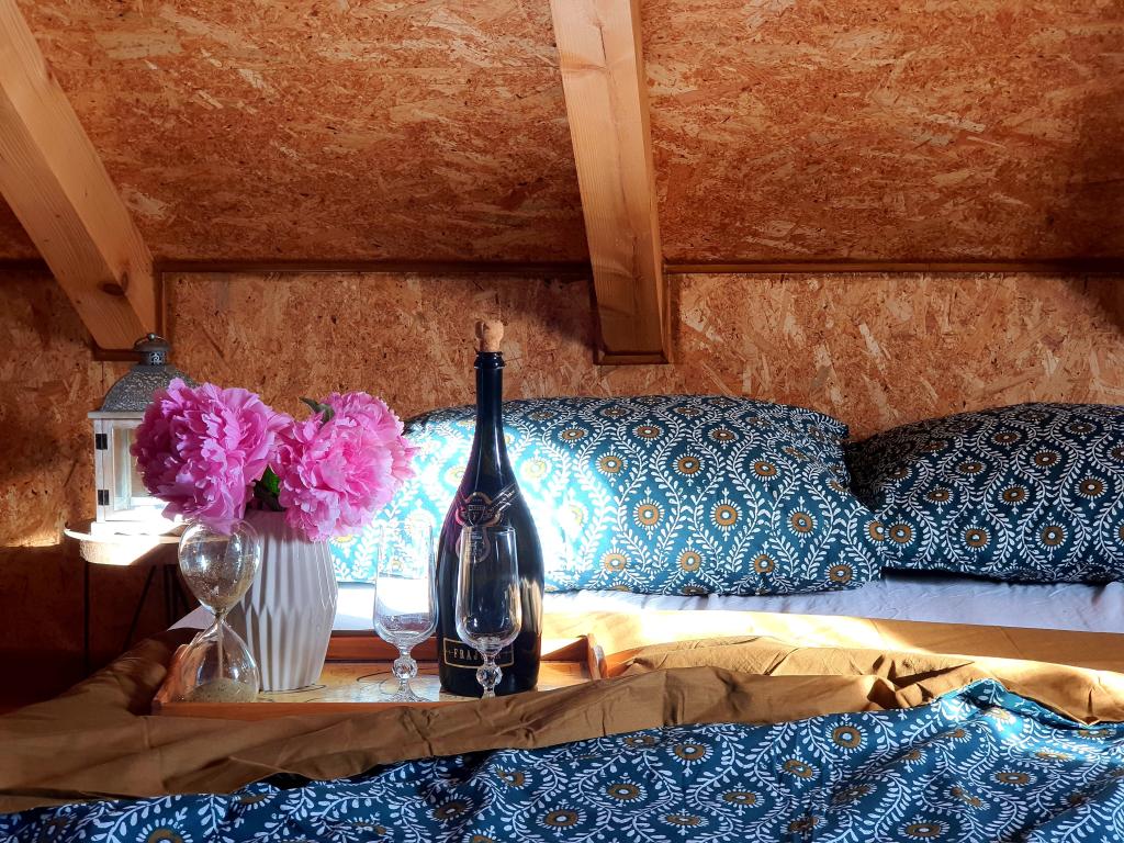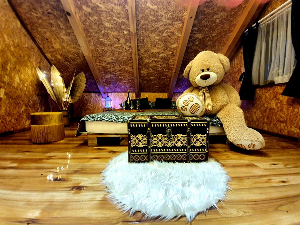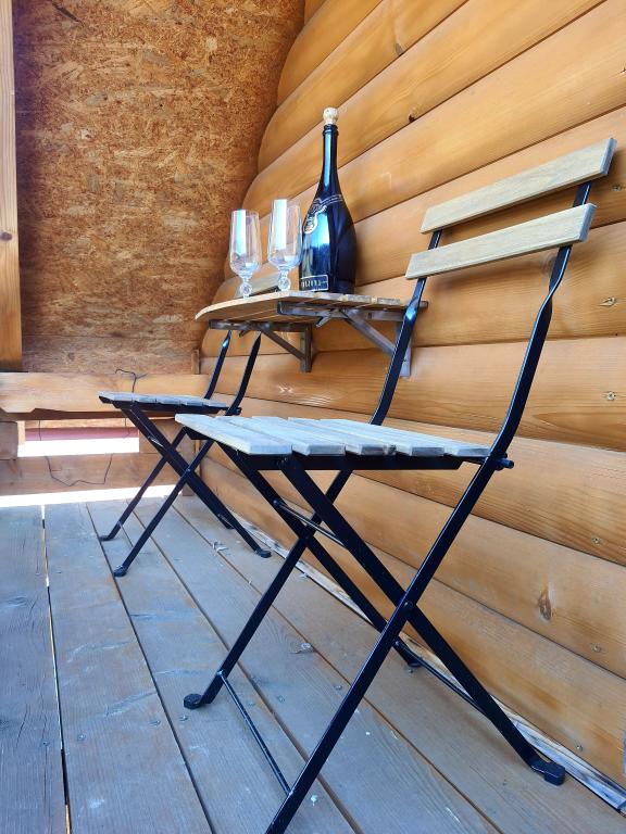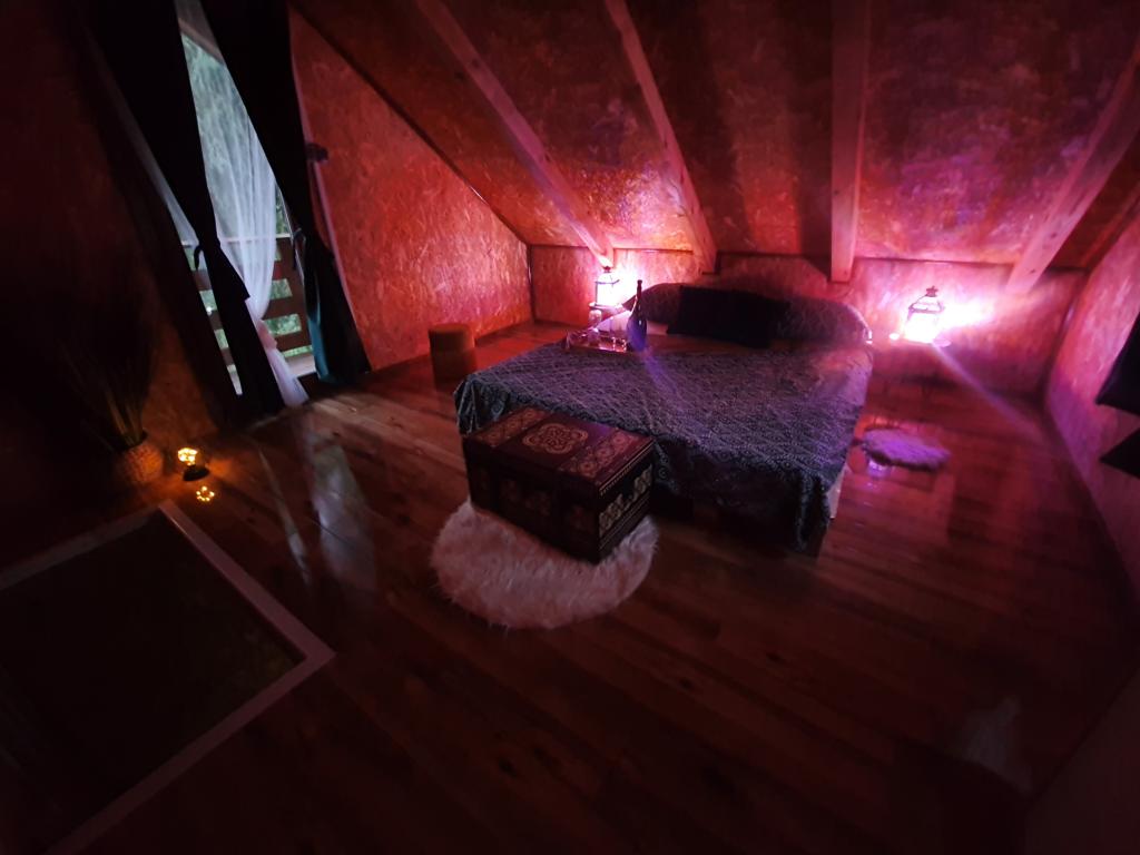 The oasis of peace includes a wooden holiday cottage in the town of Dioš, only 7 km from the town of Daruvar. The house consists of a kitchen connected to the living room, a bedroom in the attic with a balcony, and a toilet. The shower is outside and is right next to the house. Capacity for 5 people - in the bedroom there is a double bed for two people and one extra bed, in the living room there is a sofa bed for two more people. In front of the house there is a spacious terrace with a view of the lake. There is also a fishing boat with space for socializing or celebrations at guests' disposal. Pets are also allowed. The house is located in a secluded area, surrounded by a meadow and forest, and offers the right opportunity to relax for guests who want silence and nature.