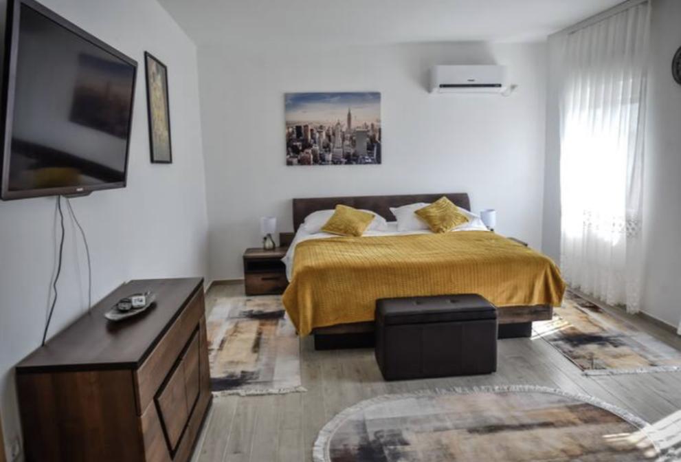 House Kućar is located in the quiet village of Piškorevci near Đakovo. The house has a ground floor, first and second floor. There are 5 rooms in the house, each room has a private bathroom. On the ground floor there is a living room, dining room, kitchen and 2 more toilets. Behind the house there is a barbecue, bocce court and a small orchard. The house also has a pool table for use.