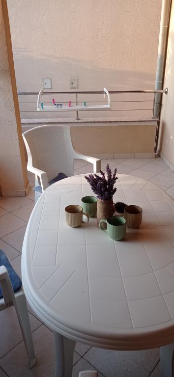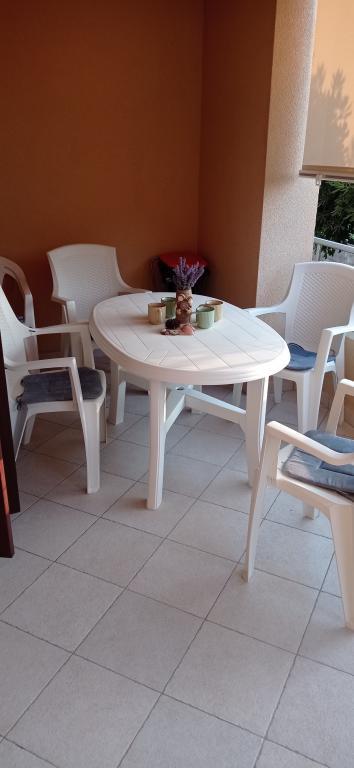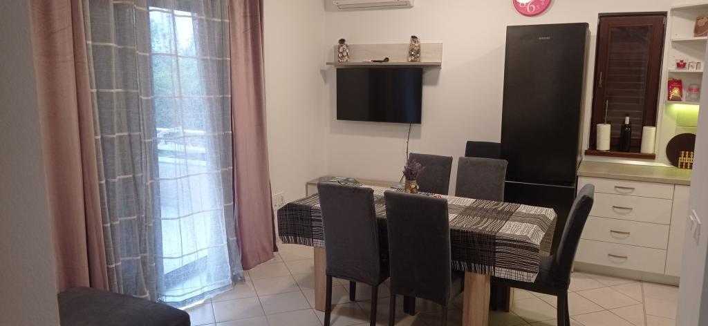 The apartment is located in a quiet apartment complex on the ground floor of the building. It is fully furnished with household appliances for use. The facility is located 250 m from the first beach, which is rocky, and 2 minutes by car from the sandy beach in the center of the town. In the center there is a shop, restaurant, 2 coffee bars on the beach and a church. From the apartment to the center there is also a newly renovated promenade along the sea. The island is ideal for summer vacation because it is ideal for cyclists, walking and running on the top of the island. Many sights.