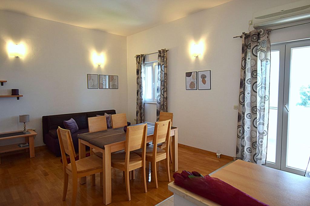 We highly recommend it to everyone because the accommodation met all our expectations. The hosts are excellent, everything is neat and clean. The apartment has everything you need for a longer stay. A minute to the beach, a vacation for the soul and body. The place itself is beautiful, neat, and the sea is clean. We were with children and a dog who immediately got used to the new environment, and the hosts welcomed us kindly.