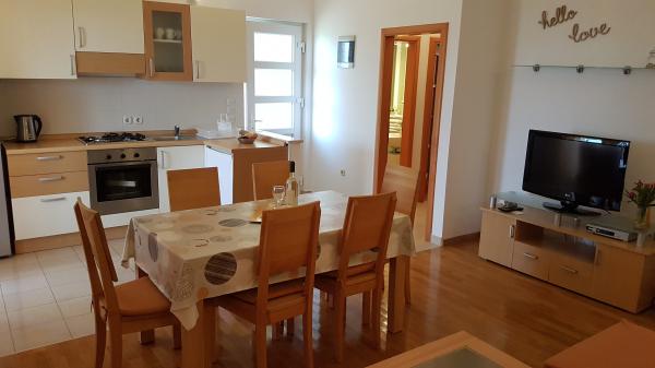Excellent communication and arrangements with Ms. Jasenko and Mr. Branko, the apartment met our expectations (air conditioning, cleanliness, comfortable and large enough beds, enough dishes, large fridge with freezer, sea view from the terrace...), secured parking space and of course a very well-kept and daily cleaned outdoor fenced pool with enough sun loungers and parasols. The rental price is definitely reasonable considering what it offers, so I highly recommend it to future guests. Thank you to the hosts for everything!