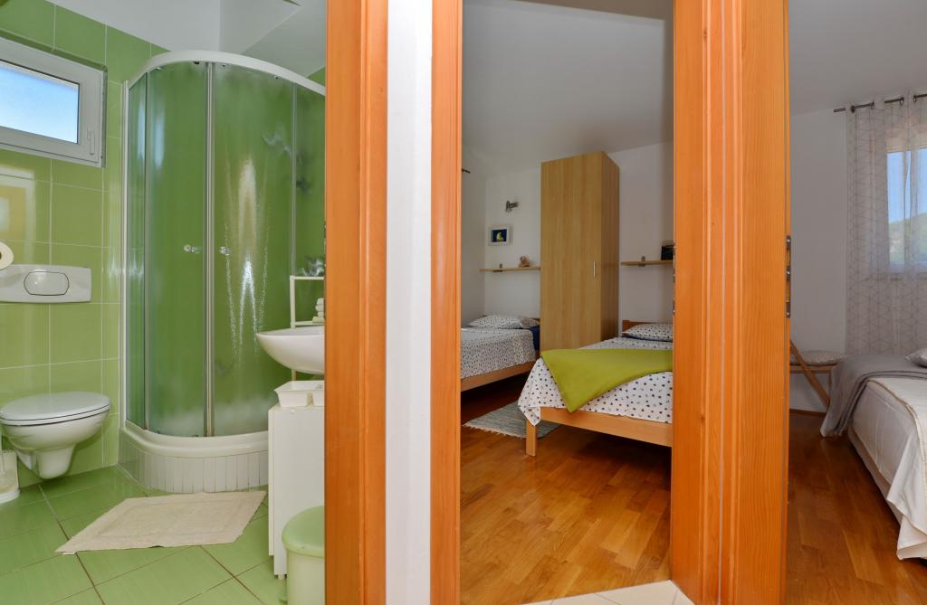 Villa with 3 apartments Karla. In a quiet, sunny position, 100 m from the sea, 100 m from the beach. For shared use: swimming pool rectangular (8 x 4 m, 135 cm deep, 15/04 to 14/10) with internal stairs. Barbecue. In the house: internet access. Spacious and secure parking with a villa on the plot. Shop, restaurant 700 m, cafe 100 m, sandy beach 800 m, pebble beach, pebble beach, rocky beach 100 m. Apartments are newly decorated, air conditioned and fully equipped for idyllic holidays. Apartment 1, on the ground floor with plateau and outdoor playground, sea view. Apartment 2, on the first floor, covered terrace with furniture, beautiful sea view.