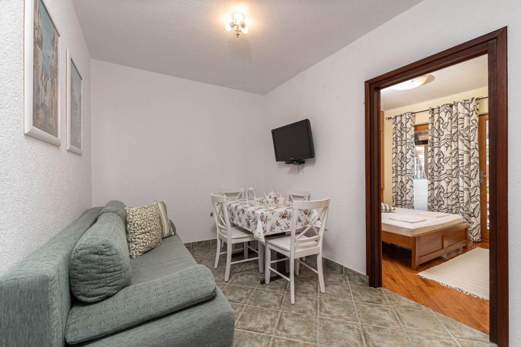 Apartment consistent with the description, well-kept. Owners hospitable, friendly and accommodating. Quiet and calm, beaches suitable for recreation with children. A place to which we return!