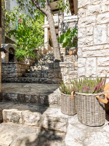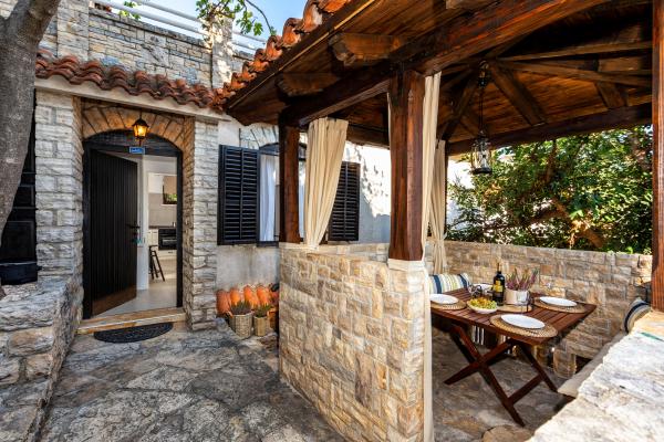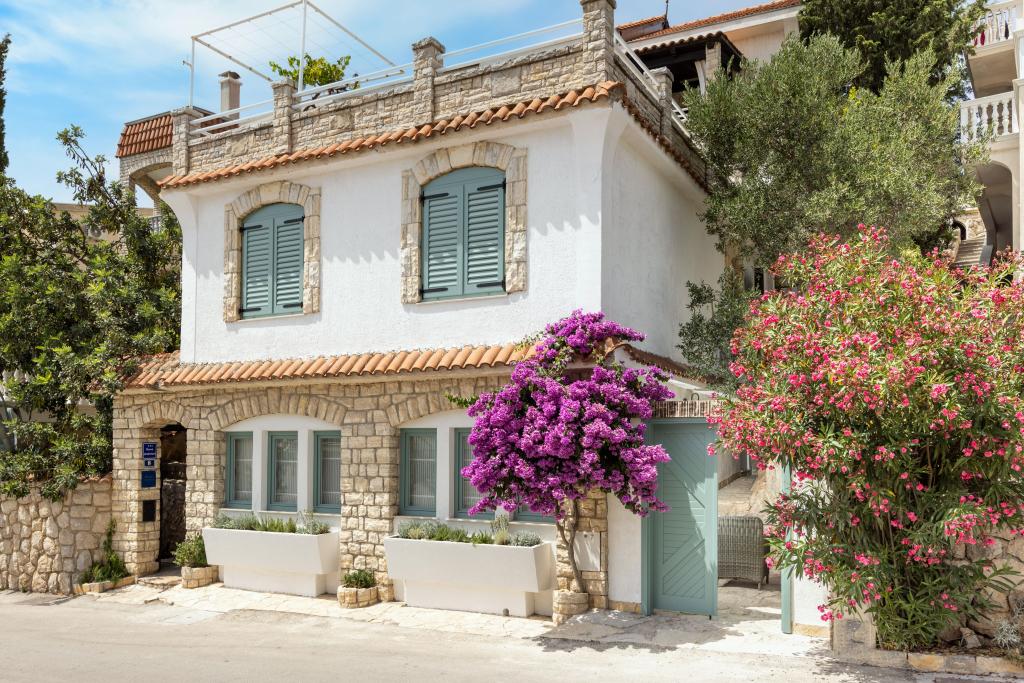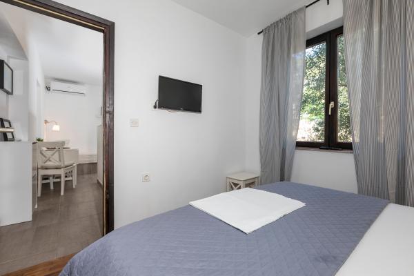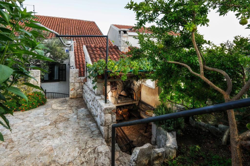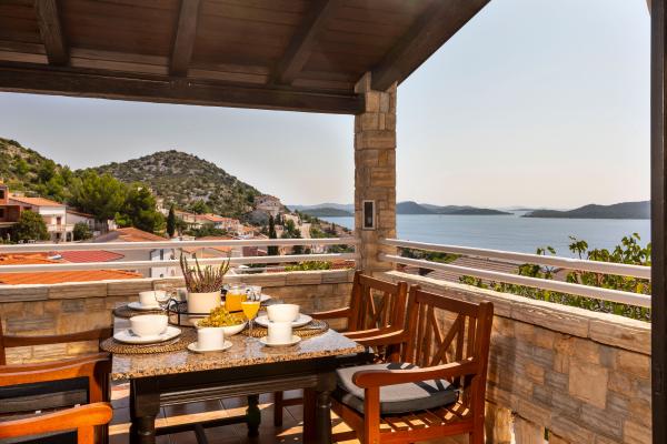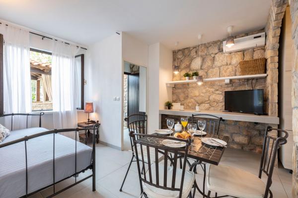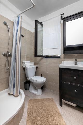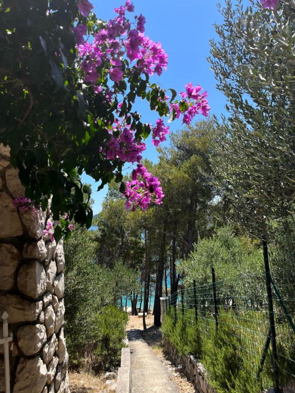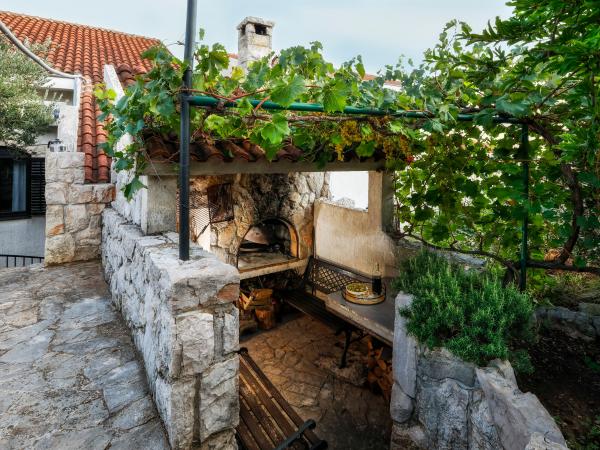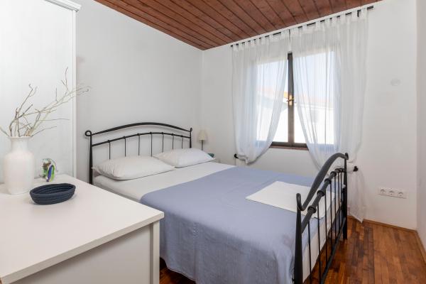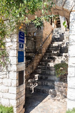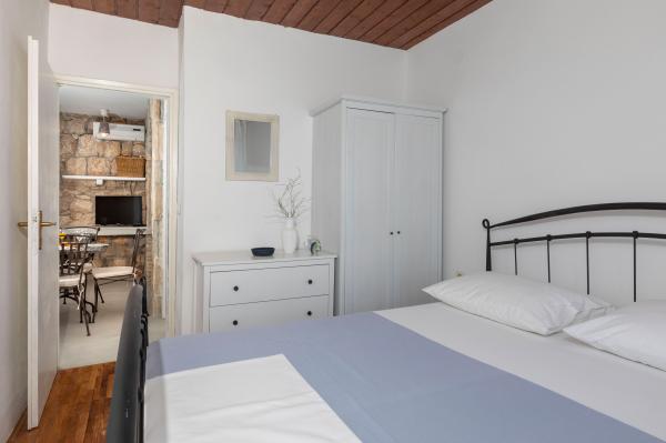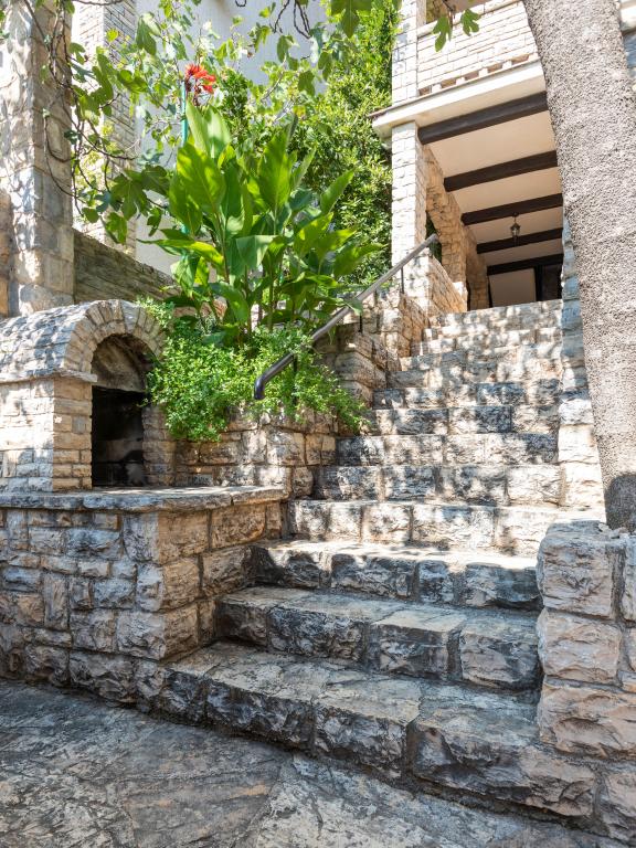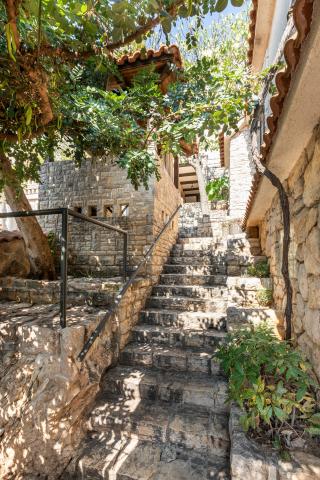 The house itself is fantastic. Stone surrounded by olives, laurel, figs and flowers. It has a corner with a barbecue, while even chickens hide in the back of the house. The apartment has a wonderful view and everything you need for a pleasant vacation. Friendly host. The fastest way to get to the beach is by stairs. Two or three minutes and you are on the beach. It's a little more uphill. There is always a corner in the shade on the beach. There is a bakery and a small market nearby. We had a great time on vacation.