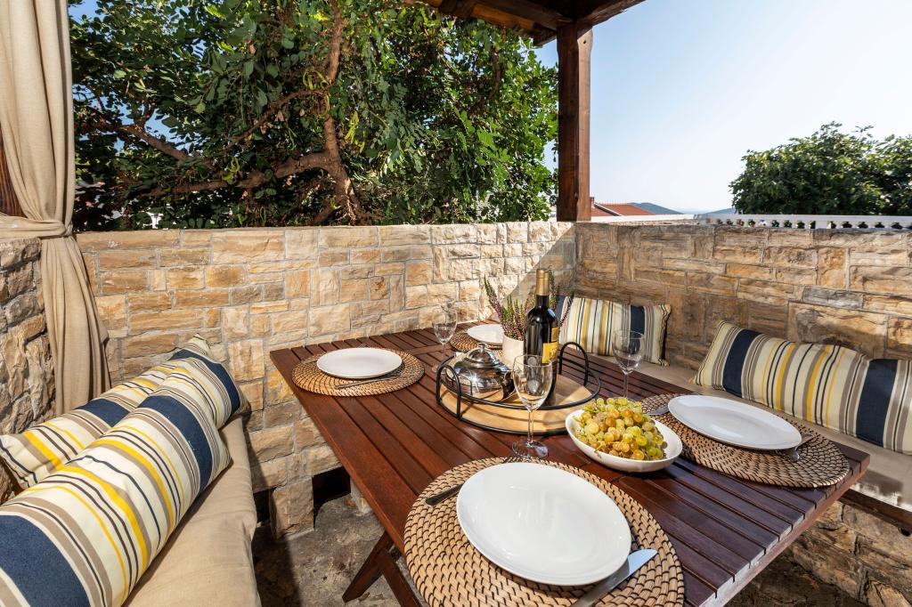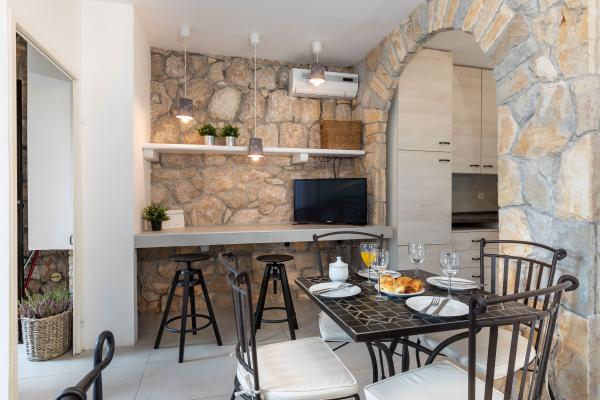 A beautiful stone house with a garden - fig trees, pomegranates, almonds next to tomatoes and watermelons. Everything clean and tidy. The owner polite and helpful. Takes care of every detail and order. The kitchen is equipped with everything including a toaster. Nice and quiet town. Perfect for families with children looking for peace and relaxation. I recommend!