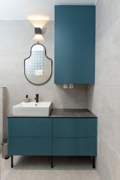 The apartment is very nicely decorated and tidy. The hosts are very kind. But the distance to the beach is not 100m, as it says, but 300 meters up the stairs, which is not very convenient if you go with small children.