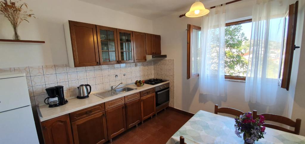 Great apartment, spacious rooms, separate fully equipped kitchen, bathroom with shower. Very clean, nice and comfortable. From the terrace there is a beautiful view of the sea that blew us away. The owners were very nice, caring and helpful, we felt very comfortable with them, like with their closest family. The town is small but very picturesquely situated. A few steps to the nearest beach, what more could you want... We will definitely come back here!!!