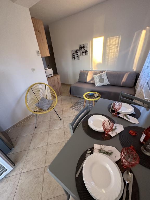 I have been spending the summer with the Šarić family for several years. I don’t have enough words of praise for them as hosts. The first time (2014) when my sister and I came to them we were shocked (in a positive sense) because the apartment was at a much higher level than we expected. Everything smelled and shone of purity, every corner of the apartment. The view from the balcony is beautiful, relaxing and calming ... what a pleasure. Also, the balconies are very spacious and have enough shade so it is a real pleasure to eat lunch while watching the sea and the nearby islands. The location is first row to the sea, with a small nice camp in front of the house in the pine trees, which is taken care of by Mr. Lenko. Parking provided in the yard for guests of all apartments. As for the equipment of the apartment, it can be seen that Mrs. Vesna is a real housewife and knows exactly what you should have on hand during your stay there. In addition, as we return here every now and then, we notice that there is always something new added and that there is constant investment in accommodation facilities. If you need anything, the hosts are at your disposal, but they are very discreet and not at all intrusive. Here you will feel at home. Only the town of Drage is a wonderful holiday for all true nature lovers, as well as people who want peace and quiet. You will feel as if you have arrived on an islet. On the other hand, if someone wants the hustle and bustle, both Zadar and Šibenik are only 38 km away from Drago. You can't be bored because there are numerous national parks (Kornati, Krka, Paklenica) as well as nature parks (Vransko Jezero, Telašćica). Above the place there is a lookout Čelinka with a beautiful view of the sea and nearby islands on one side, and Vrana Lake on the other side. The gastronomic offer is not large (which corresponds to the size of the place), but the ratio of price and quality, ambience, as well as the kindness of the staff are at an enviable level. I would like to point out Restaurant Marko and Pizzeria Ivan located in the fishing port (Dugovača Bay). If you decide to spend your summer with the Šarić family, it is recommended that you book your accommodation on time, because it seems that everyone who comes here once always comes back.