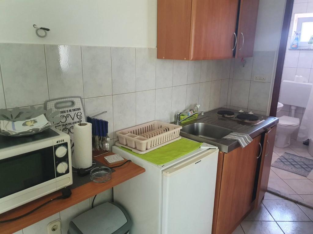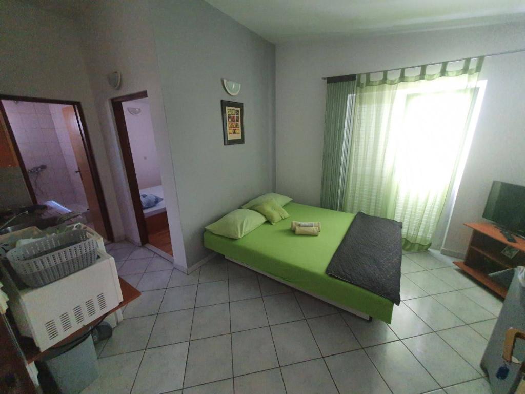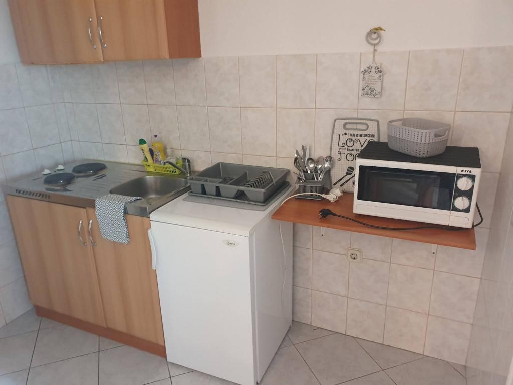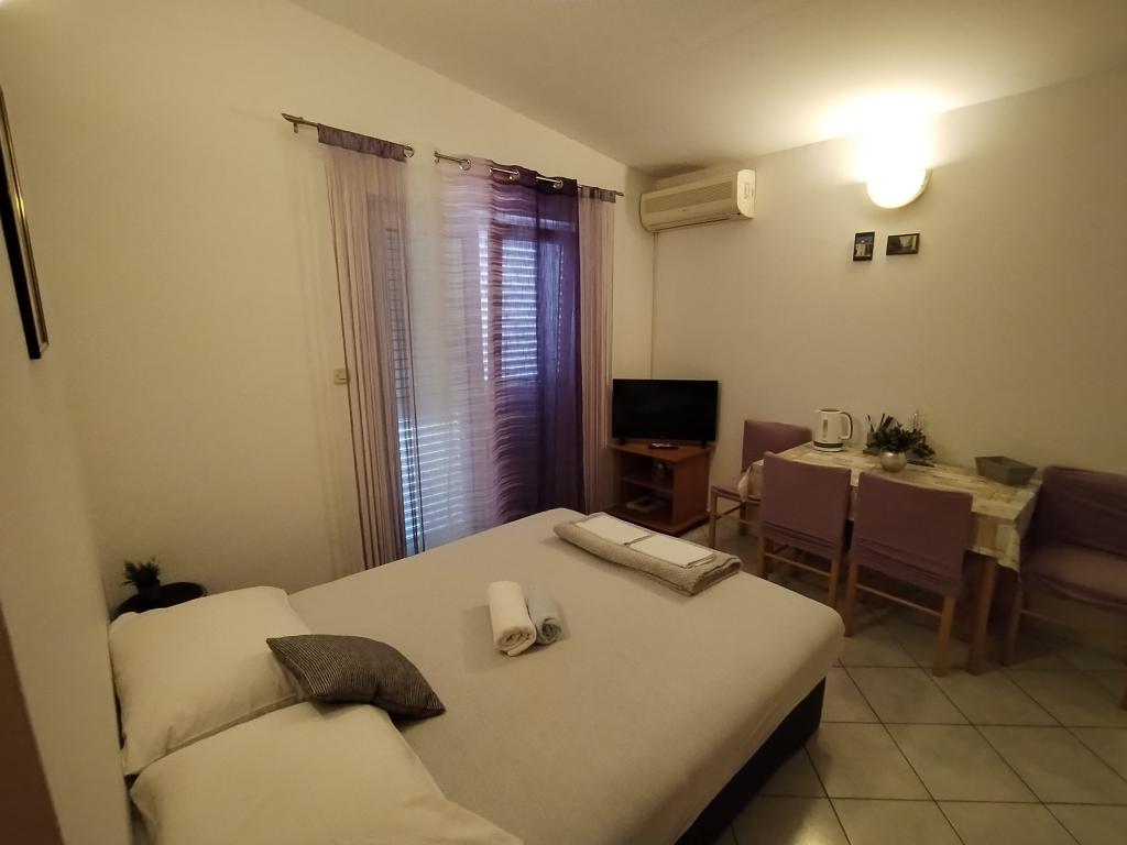 Apartments Marko are fully equipped apartments for four people. The apartments consist of a bedroom with a double bed and a wardrobe, a bathroom with a shower, a living room with a bed for two people and a TV. The kitchen is equipped with all dishes, microwave, kettle, refrigerator. Iron and ironing board. The apartment has air conditioning, Wi-Fi and each guest has their own parking space. It is about 900 m to the beach. On one side is the beautiful Vrana Lake and on the other is the sea. The shop is located 10m from the apartment. A visit to the Krka waterfalls, a tour of Kornati or a visit to Zadar and the sea organ and much more will make your stay unforgettable. The host has his own wine, which each guest receives as a sign of welcome. The facility also has a grill.