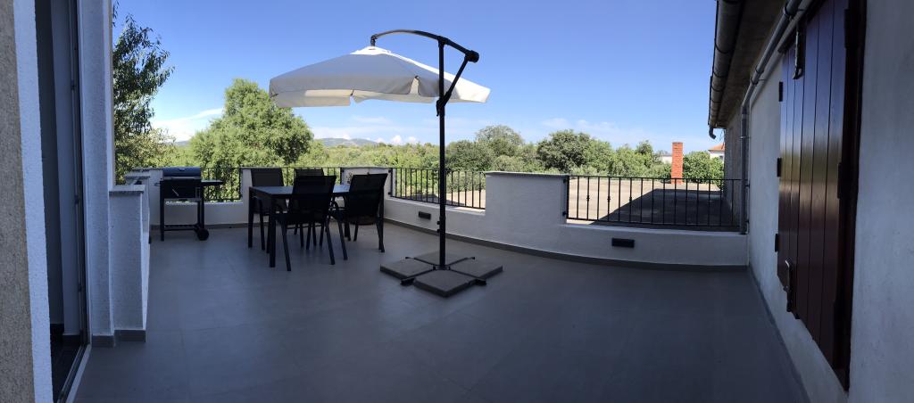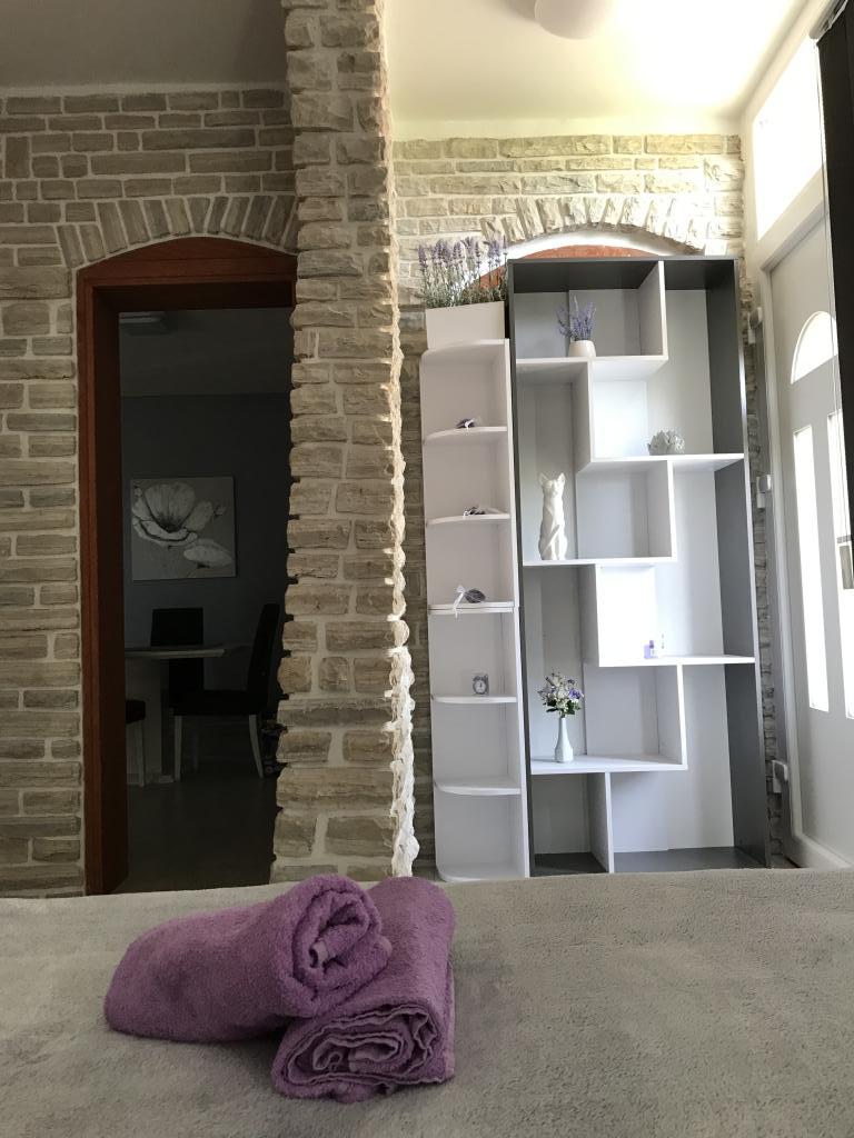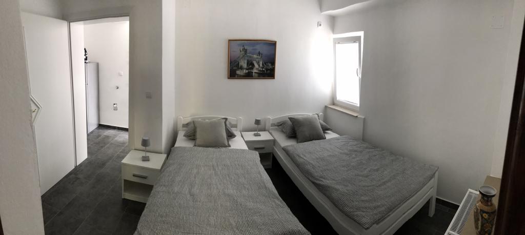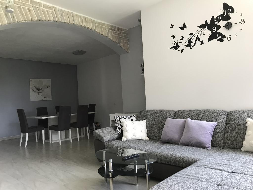 Very quiet and peaceful place, just for a vacation without the city crowds and traffic. There are really all kinds of beaches - from sandy for children, pebble, concrete, but also those in solitude, outside the place, for your complete privacy. The sea is indescribably clean and comfortable for swimming. You have less than a 10-minute walk to the beach, depending on which side you choose. The apartments themselves are newer construction. Apartment 1 has a huge lobby with barbecue and table on the ground floor. Apartment 2 has a terrace of about 20 square meters with table and barbecue. Pets are welcome. Everything else is on pictures and google maps. For everything you are interested in, contact us by e-mail, WhatsApp, Viber or Mob.