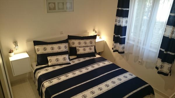 We recommend this apartment with all ten of us. We had a really wonderful holiday here. The apartment is beautiful, really clean, well equipped, there was also a dishwasher and a washing machine, we didn't miss anything. The location is great, everything you need is nearby - restaurant, bakery, ice cream, cafe. The beach is really short, about 30m, there is plenty of shade, beautiful sea, bouncy castle, snack stand right on the beach. The place is suitable for families with small children. The landlady is very nice, helpful, she provided us with everything we needed, and we even received a small gift when we left. Thank you very much for a great vacation. We would love to come back again.