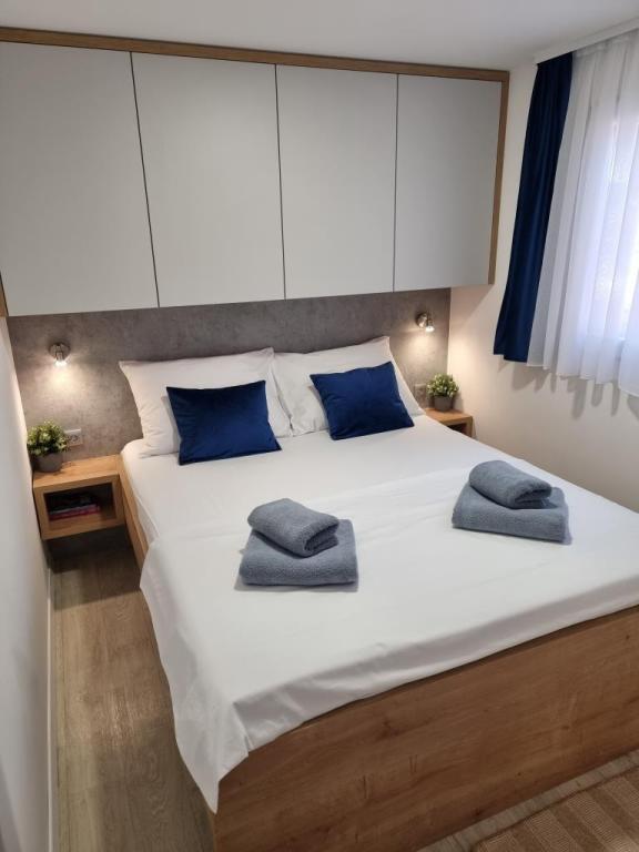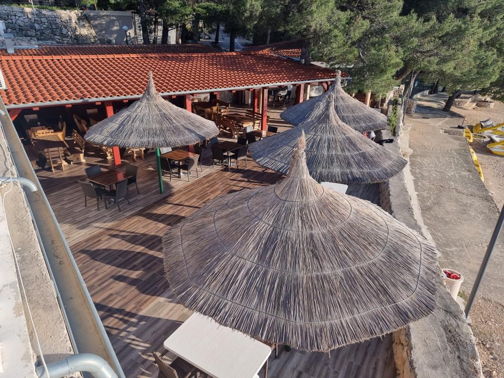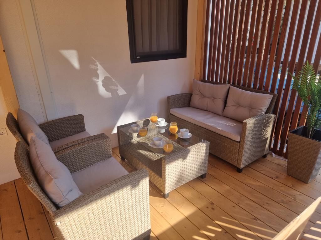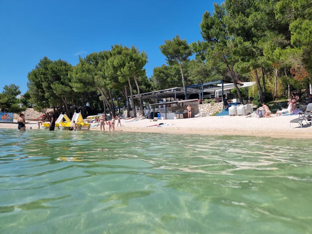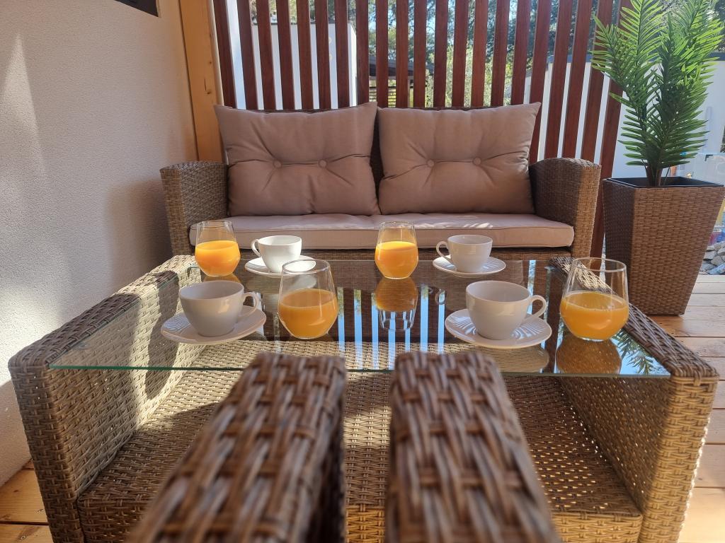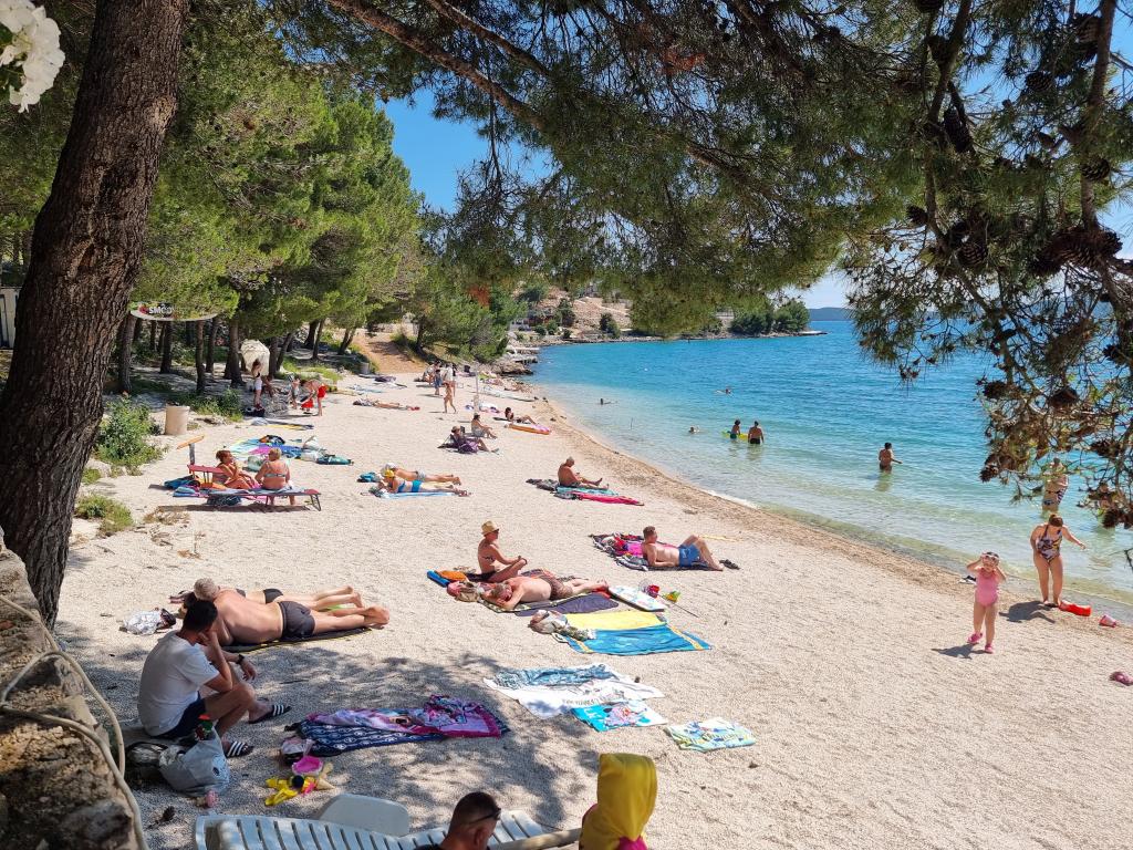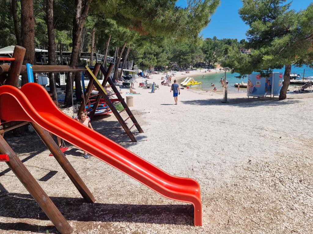 The premium mobile home "SUN & JOY" is brand new and located in an excellent location within the 4-star camp "Oaza mira", only 50 meters from Porat beach, and 150m from Oaza mira beach. It is designed to accommodate up to 6 people. It has 2 bedrooms, one with a double bed and the other with 2 separate beds. In the living room there is a corner sofa with a mattress pad that can be used as a bed for 2 people. The house is modernly equipped with all devices for a comfortable stay, such as air conditioning for cooling and heating, TV with satellite programs, and free internet. The kitchen is equipped with a refrigerator with a freezer, a stove, a microwave oven, a kettle, a toaster, a mixer, and adequate dishes and pans. On the spacious terrace there is a dining table and lounge furniture. There is a barbecue available in the garden, and you can park your vehicle next to the cottage itself. Towels and bed linen are included in the price. Smoking is allowed on the terrace. Pets are not allowed.