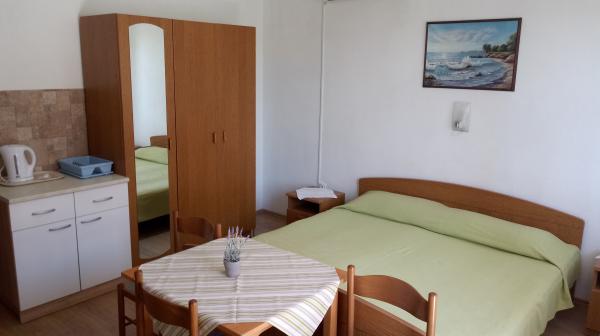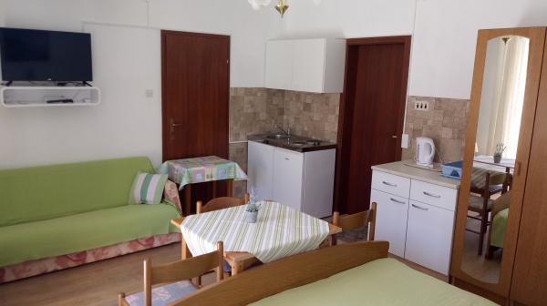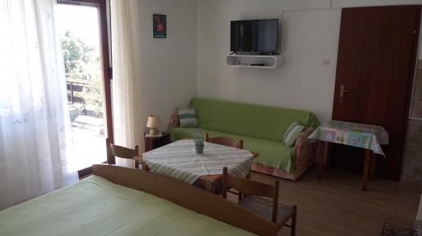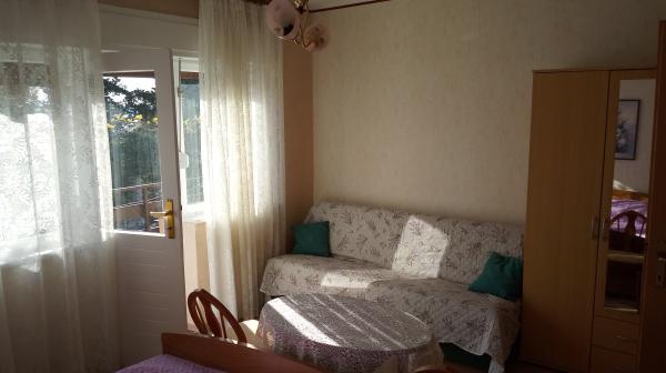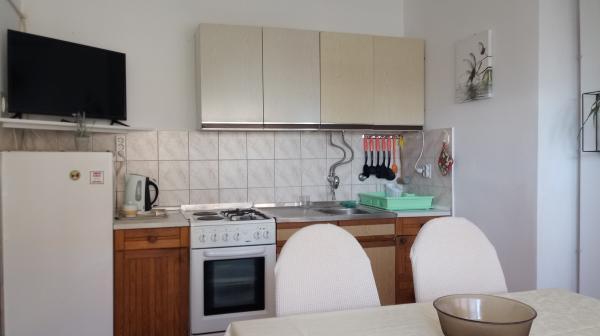 The apartment is located in Dramalj, the street of Milovan Muževiža 116., with the center of Crikvenica connected with City bus, city boat and an attractive tourist train. The house has several accommodation units, which are located on the 1st floor of a family house, and the rest of them are live owners. Apartments are far away from the sea about 5 min. walk to the grocery store and just as much to the beach. Ideal for small families. The apartment consists of one bedroom with double bed and extra bed, fully equipped kitchen, bathroom and hallway. The entrance to the apartment is from the back of the house and comes directly to the kitchen, from where it offers a beautiful view of the sea and the island of Krk, as well as a balcony in front of the bedroom.