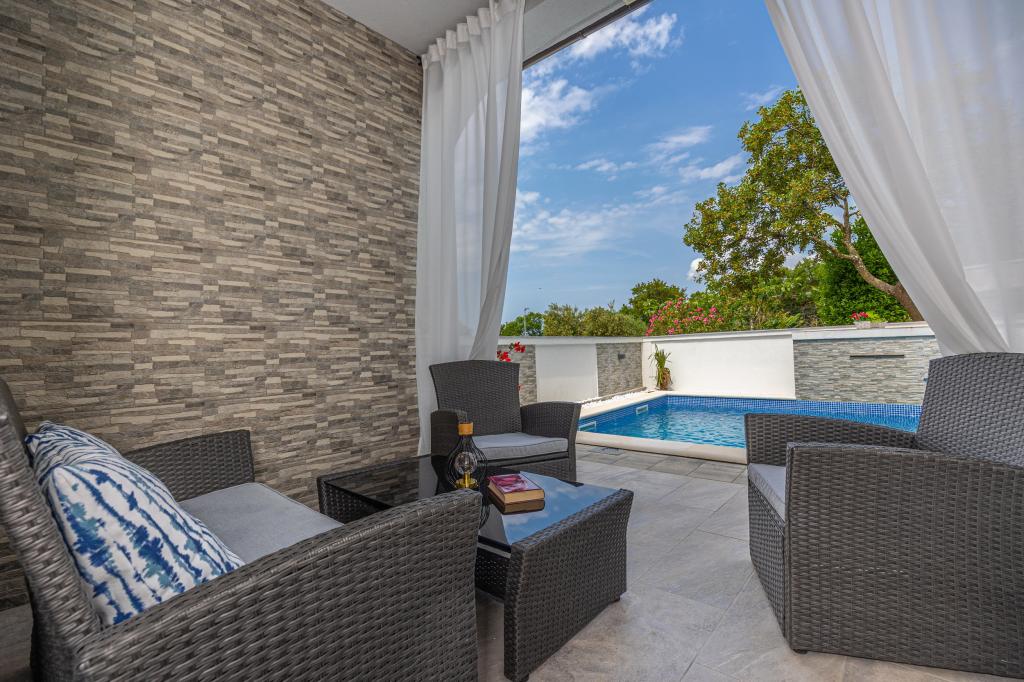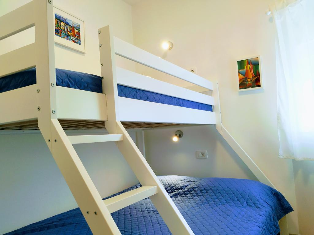 Last summer we spent 2 weeks in this apartment. We are very satisfied. The apartments are very clean with air condition and all necessary stuff for cooking. We have 2 small kids and the backyard in shade with a playground was great. When kids were playing we could enjoy in coffee in peace. The beaches are near, with a shade and they are adjusted for children.