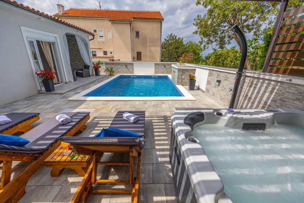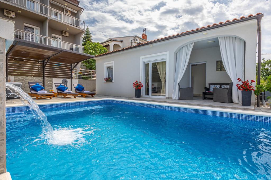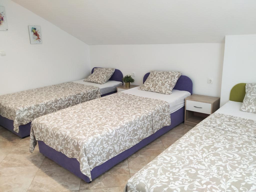 The family house with apartments is located in Dramalj, a quiet part of the Crikvenica Riviera, only 400 meters from the promenade by the sea that connects Dramalj with Crikvenica. Apartments A2 + 2 consist of an equipped kitchen with dining area, bathroom, 2 bedrooms, one with a double bed and the other with a bed for 2 people and a balcony with a sea view. Apartments A3 consist of an equipped kitchen with a dining area, a bathroom, 1 bedroom with a double bed and a single bed, and a balcony with a sea view. Apartment A5 consists of an equipped kitchen with living room, 2 bedrooms, one with a double bed and the other with 3 single beds. The apartment has a spacious terrace of 20m2 with a direct sea view. All apartments have air conditioning, TV and Wi-fi. Next to the house there is a private parking for guests, and in the yard a barbecue. .