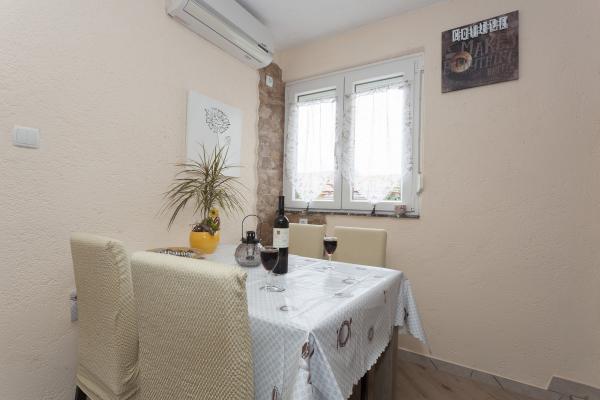 Together with my wife and child, we spent several days in this beautifully located apartment. Apartment on the ground floor of the house (also not hot at night), in the middle of a very nicely equipped kitchen fully equipped with a dishwasher. We had a terrace on the ground floor which was covered with vines and kiwi vines, we spent the evenings playing cards and sipping wine. Hostess Jasna - very polite and kind! We recommend people looking for peace and rest.