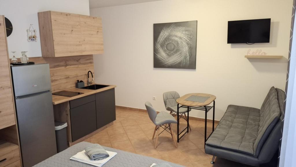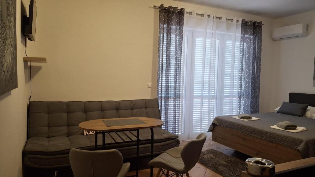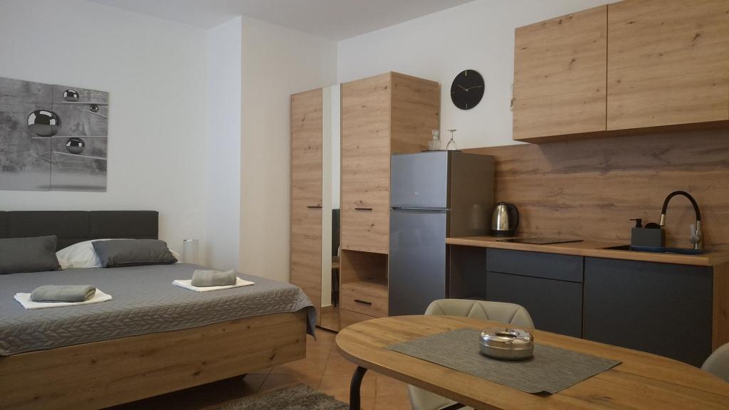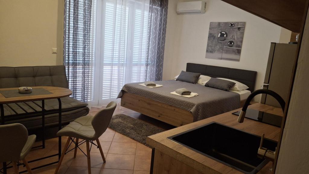 For a break from everyday life and hectic life, we offer studio apartments or rooms of your choice in a new family building, with a view of the sea. Your accommodation is located 4-5 minutes drive to the city, and the beach 3-4 minutes. The apartments have the possibility of using an outdoor grill, and are close to the shopping center Duga Mall and Lidl. With us, you have secured parking at all times, which is the biggest problem of any tourist destination. The possibility of using the air conditioner with an extra charge of 5 EUR per day. Your pleasant vacation in our facility is our biggest task.