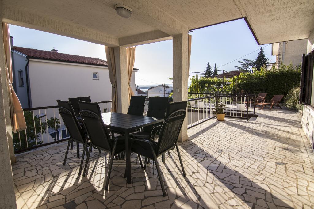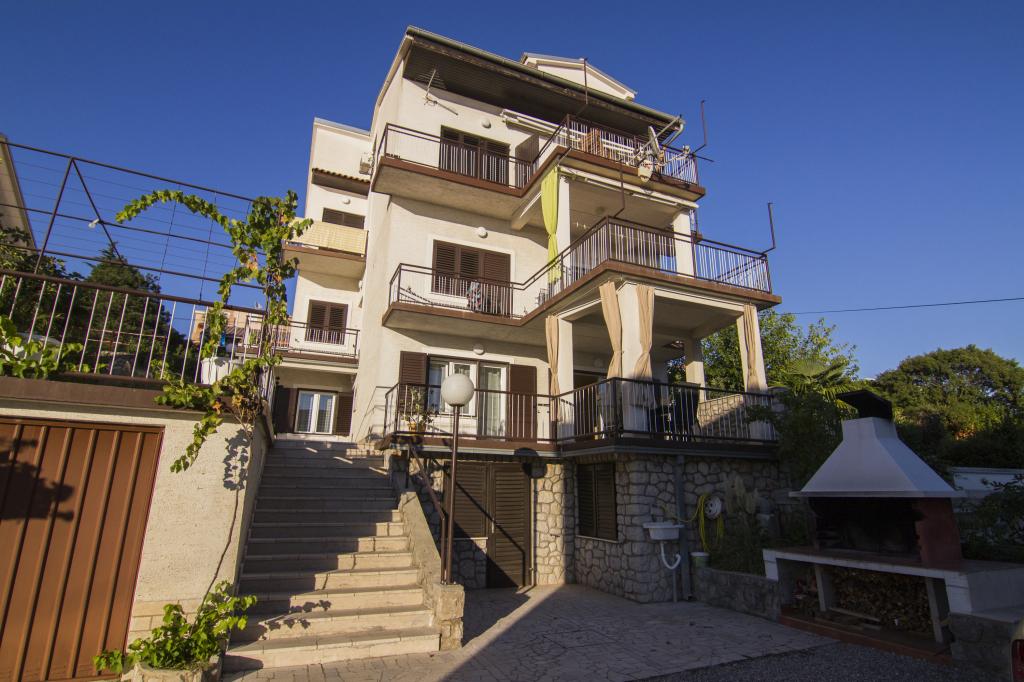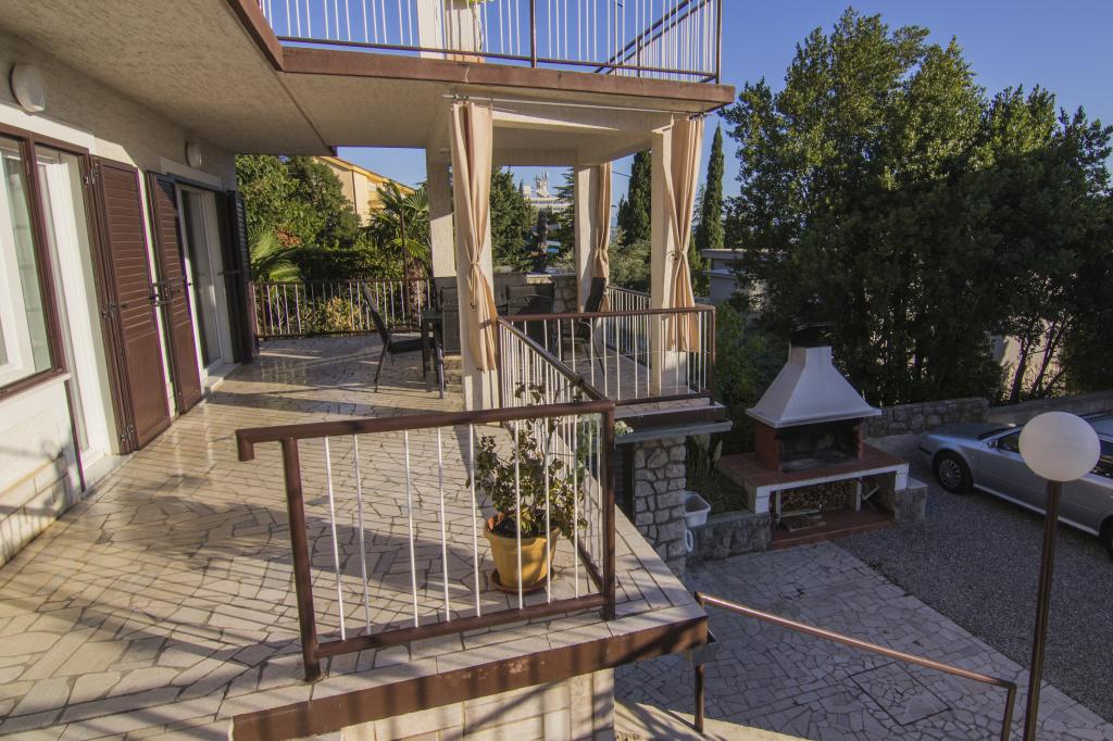 The family house is located in the settlement of Dramalj. The apartments are on the ground floor and on the second floor with a view of Kvarner, the island of Krk and Istria. The beach is 5 minutes away. walk and 300m away is the sports center. The city center of Crikvenica can be reached by the promenade along the sea or by tourist train. Guests have secured parking and can use the grill and outdoor shower.