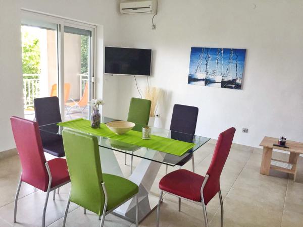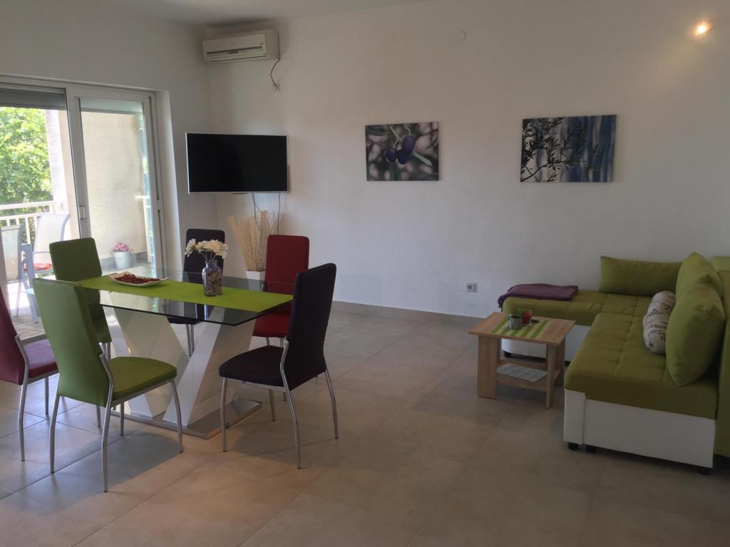 Completely furnished apartments Visnja are located in Dramalj in the beautiful quiet street with a beautiful view of the sea. The apartments are located 5min walk from beautiful beaches, 30min walk from the center of Crikvenica. The apartments are ideal for families to come together or separately began to provide great accommodation capacity. The position of the apartment is ideal for athletes who are fans of the morning jogging and stretching.