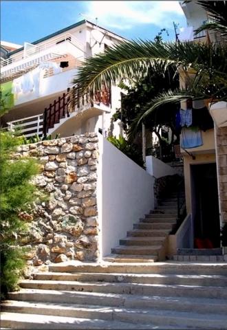 House with four apartments, located 10m from the sea. APP1(2), APP2(2+2), APP3(2+1), APP4(3+1). All apartments are equipped with: Air conditioning, satellite TV, WI-FI, parking space, sea view. Right below the house there is a beach to which you have direct access with stairs.