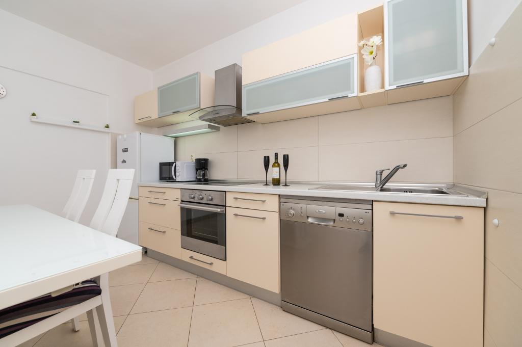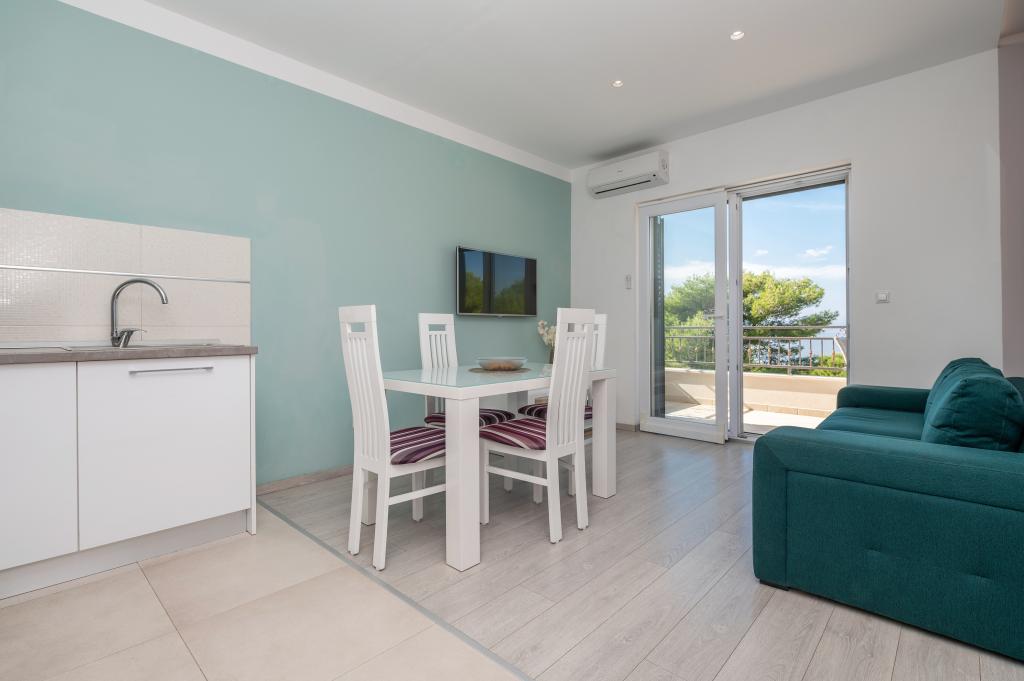 Drašnice, a small tourist town located ten kilometers south of Makarska, on the road to Dubrovnik, ideal for a family vacation. The house is located in a quiet environment 150 m from the sea. All apartments have private parking, air conditioning, TV, Wi-Fi, washing machine, dishwasher
