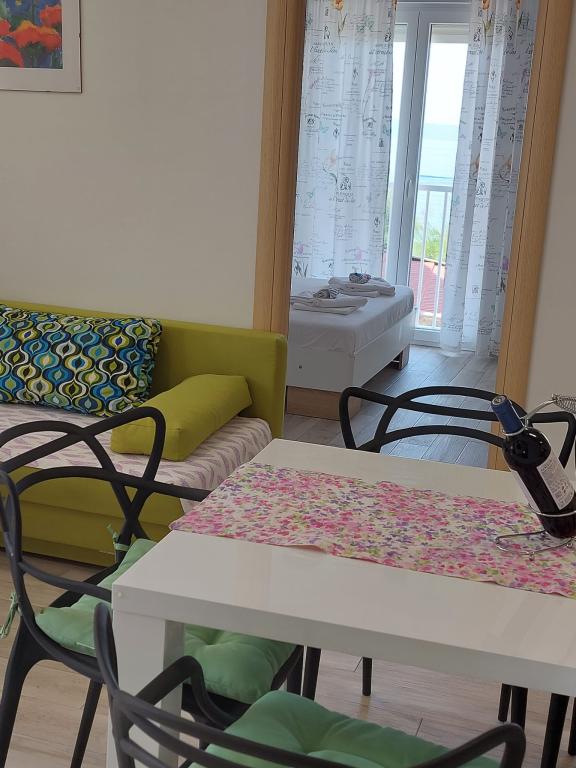 The apartment is super! well equipped, clean, comfortable. The bathroom is quite spacious and the beds are also very comfortable. The sea in front of the window. Shop, 2 minutes. The restaurant in front of the house (Puntin) is reasonably priced, with plenty and delicious service. Great for families. We've been to many places in the summer but so far this has met our needs the most. Thanks to the owner!
