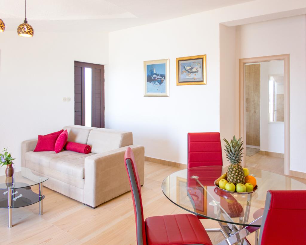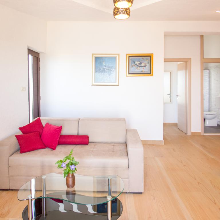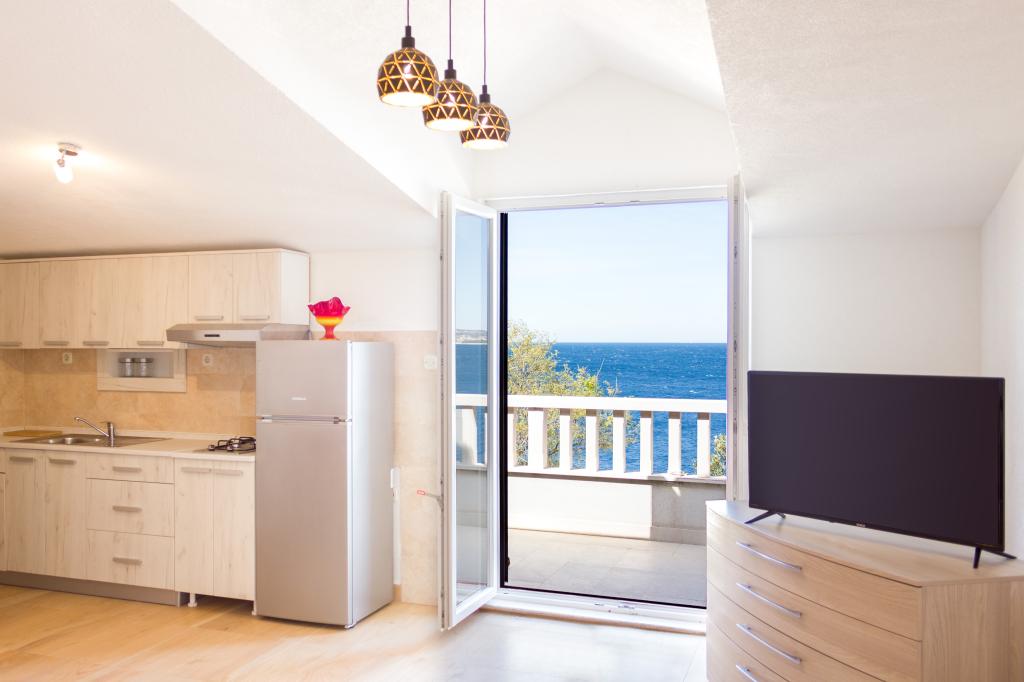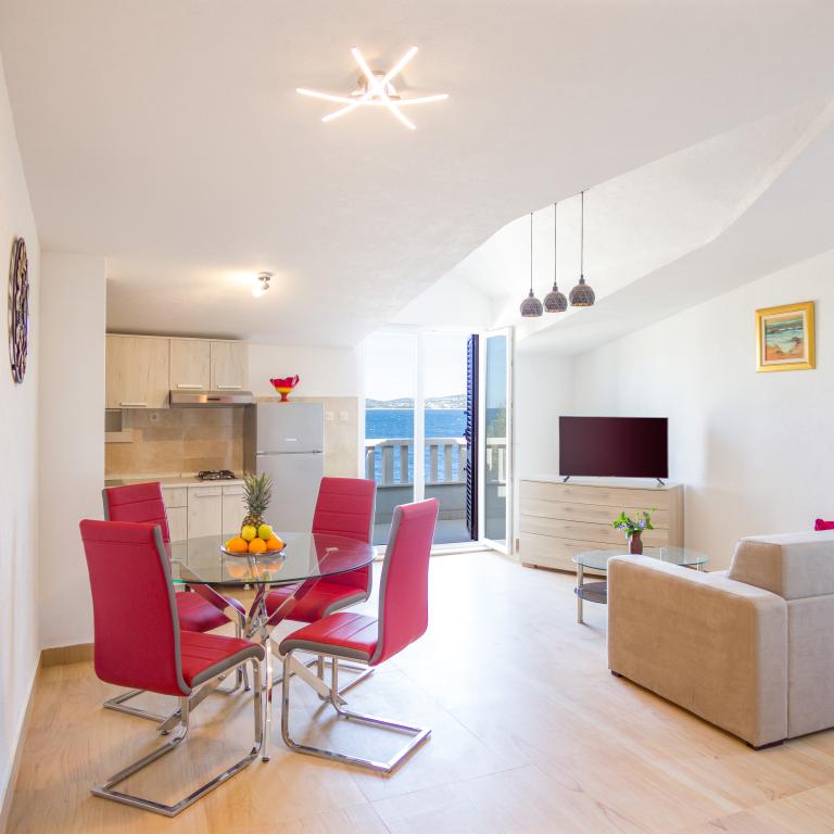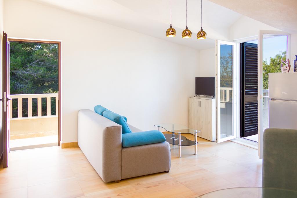 Apartments Val and Sol are located on the island of Drvenik Mali, in the Mala Rina bay, first row to the sea, 70m from the coast. The apartments, on the island of Drvenik Mali, consist of an equipped kitchen, dining room, living area with TV and sofa bed, bedroom with cooling fan, terrace with beautiful view, bathroom with hairdryer. Both apartments have a sea view. There is a possibility of renting the entire floor of the house. Apartments Val and Sol, Drvenik Mali, offer free parking, barbecue and free internet. On the island of Drvenik Mali there is a shop with limited content, a restaurant and a cafe on the beach. Therefore, we strongly recommend that you bring food, drinks and other necessities with you.