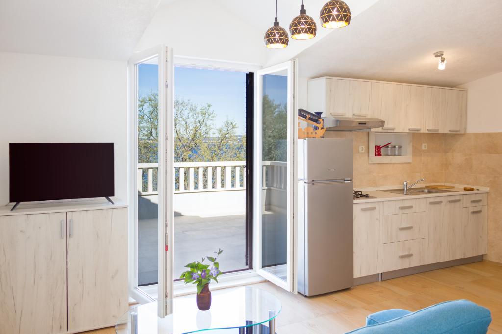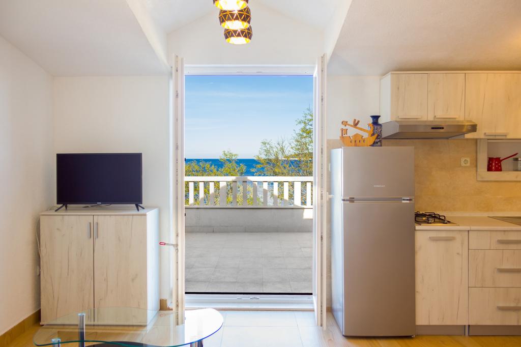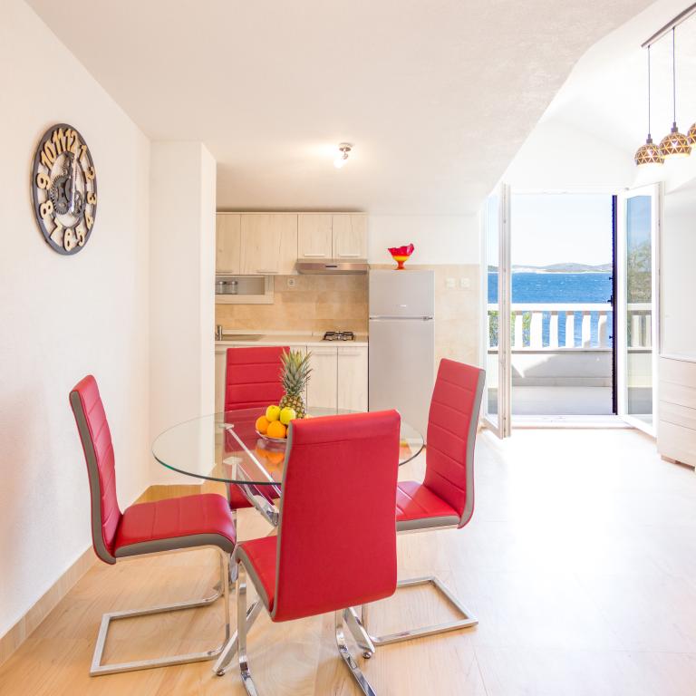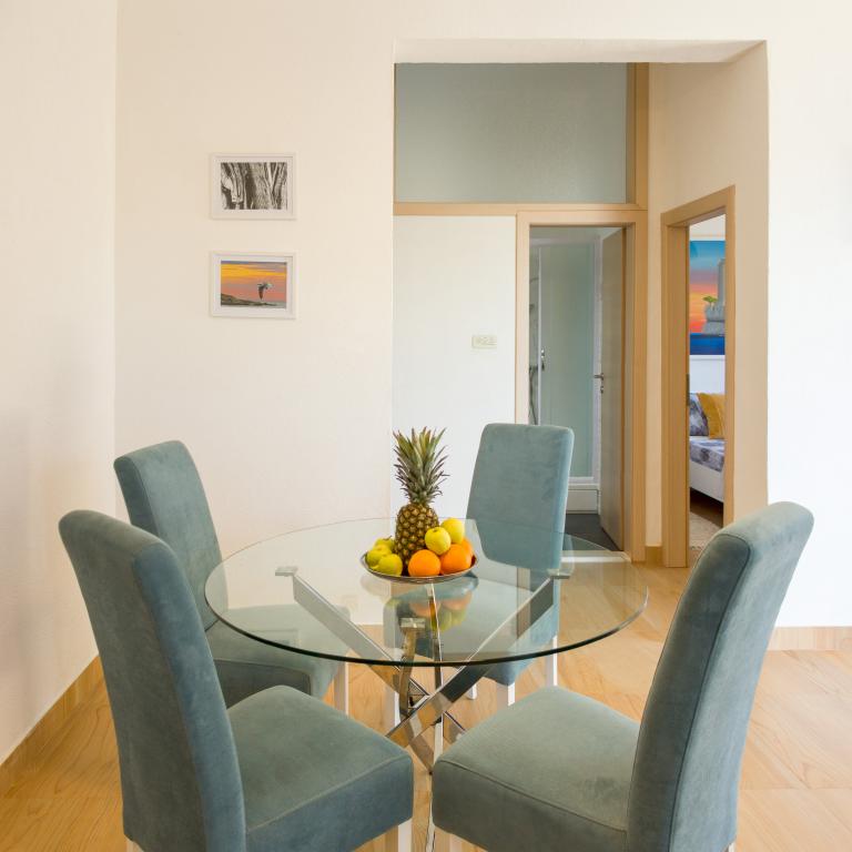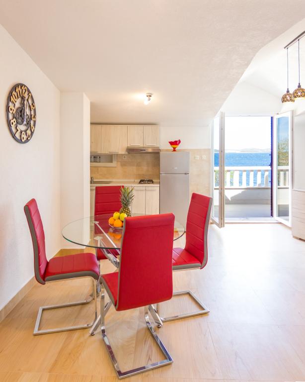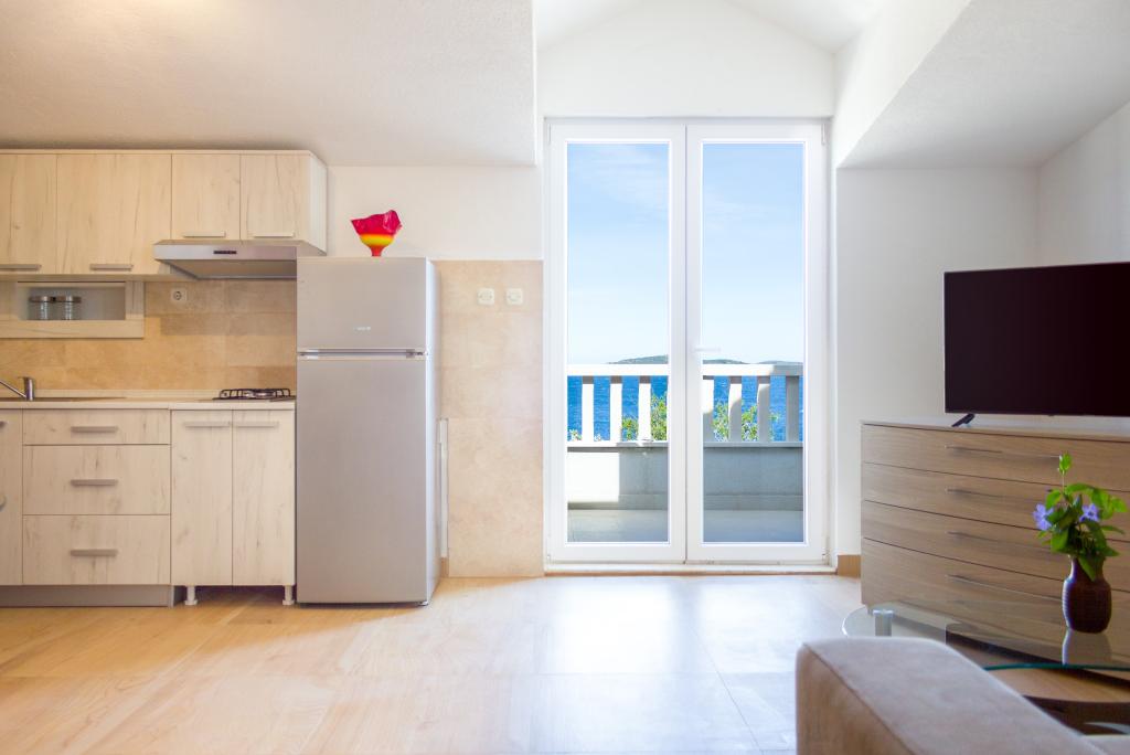 Apartments Val and Sol are located on the island of Drvenik Mali, in the Mala Rina bay, first row to the sea, 70m from the coast. The apartments, on the island of Drvenik Mali, consist of an equipped kitchen, dining room, living area with TV and sofa bed, bedroom with cooling fan, terrace with beautiful view, bathroom with hairdryer. Both apartments have a sea view. There is a possibility of renting the entire floor of the house. Apartments Val and Sol, Drvenik Mali, offer free parking, barbecue and free internet. On the island of Drvenik Mali there is a shop with limited content, a restaurant and a cafe on the beach. Therefore, we strongly recommend that you bring food, drinks and other necessities with you.