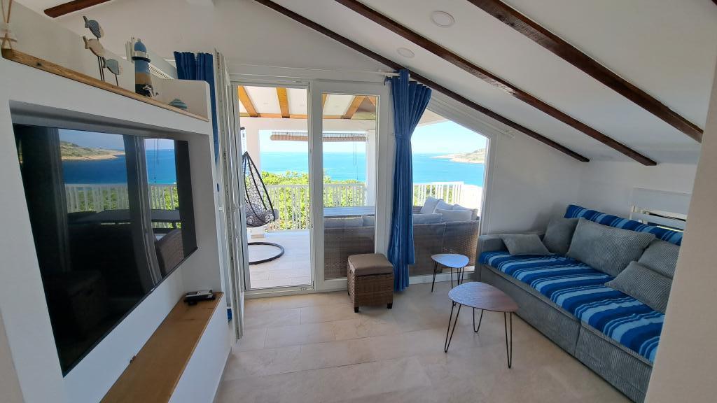 The apartment is very well equipped, the view from the terrace is wonderful! We are very satisfied with the hosts, were very friendly and we had a lovely. We'll go to the Villa Prince! The sea is clean, I recommend to people who love the untouched nature of the peace!