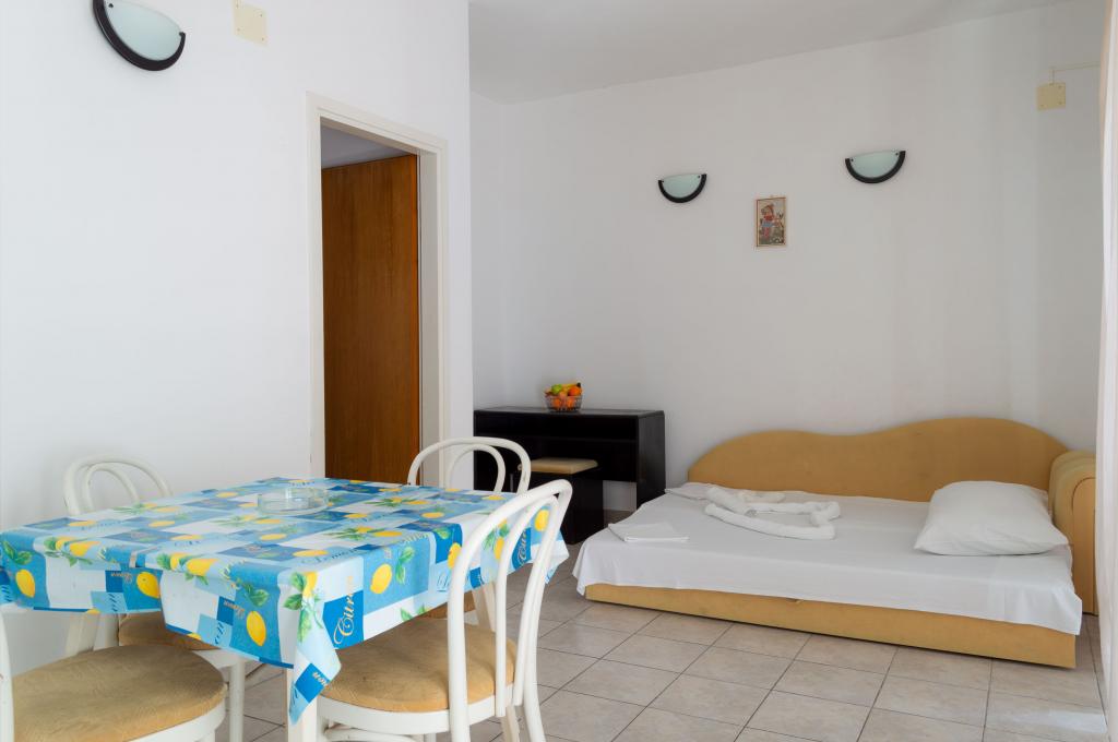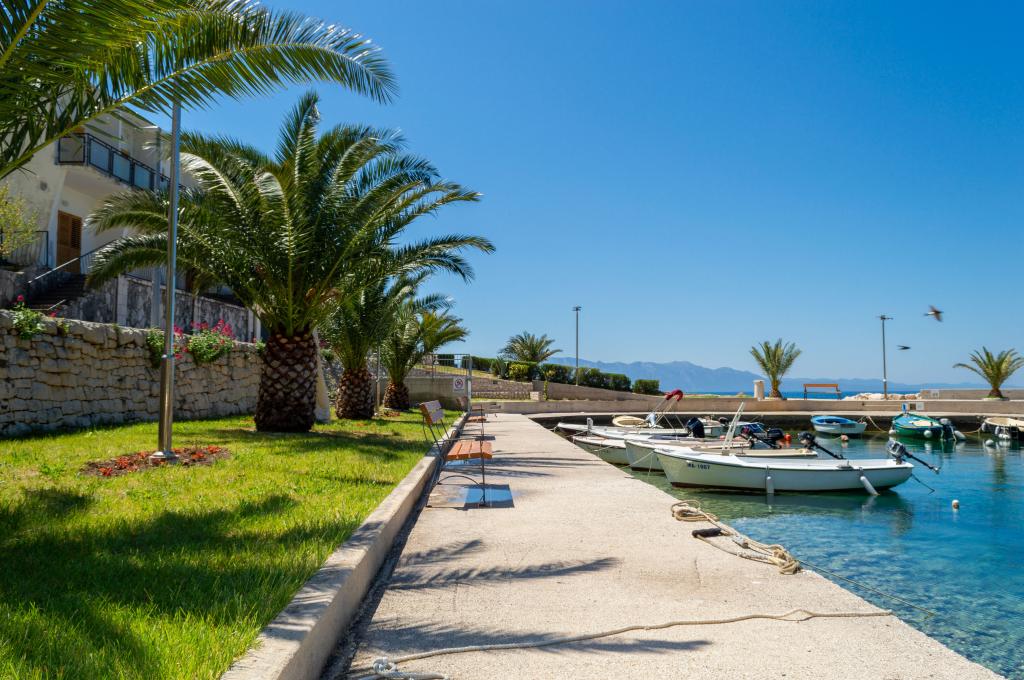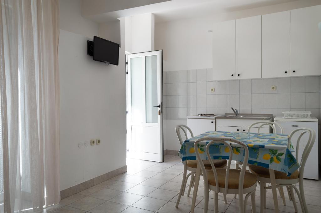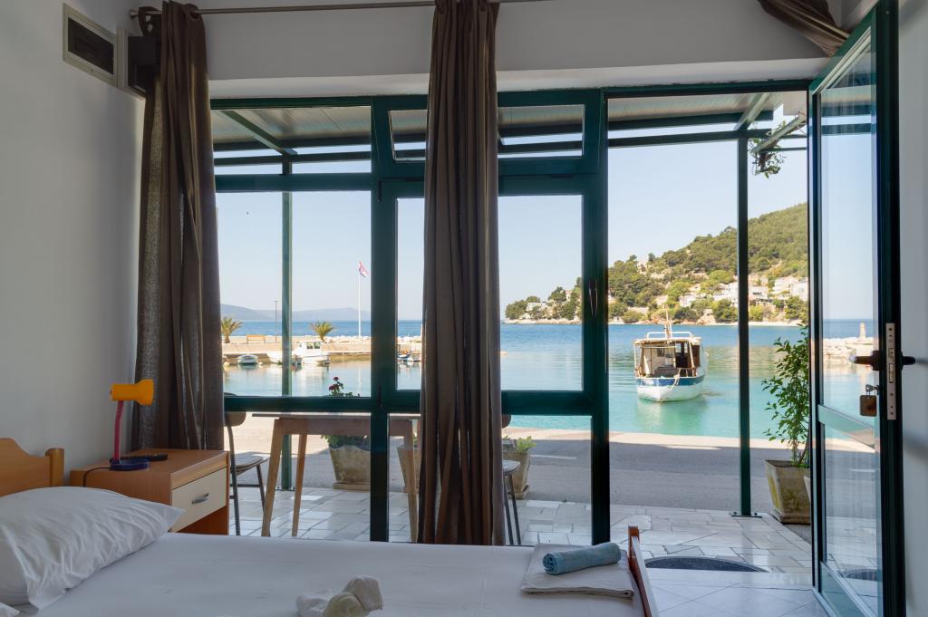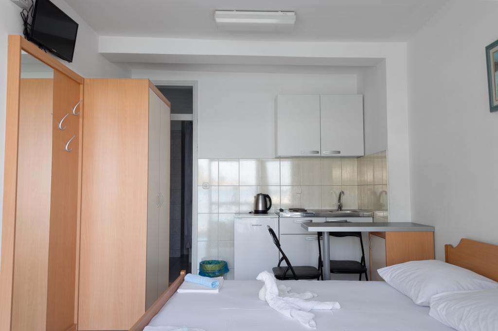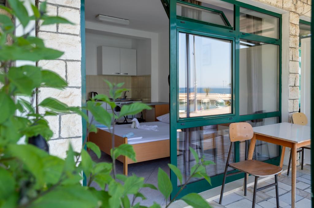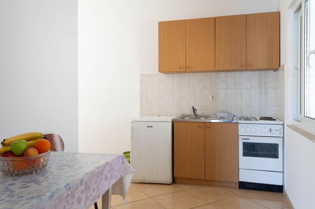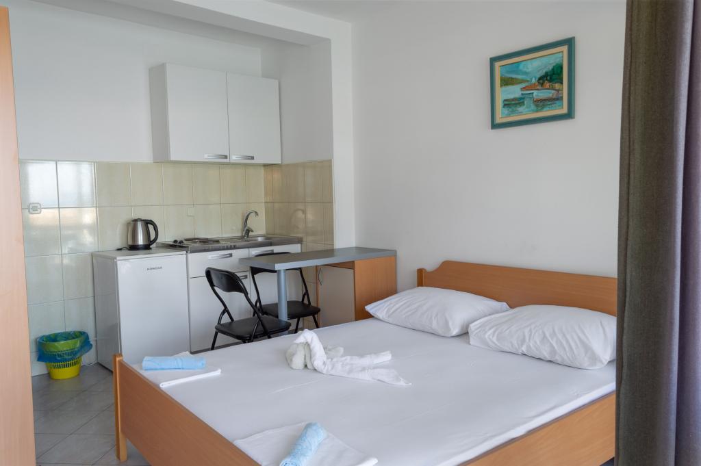 Welcome to Apartments Ivica! The apartments are located right next to the beach and evoke a summer atmosphere. There are 3 apartments, two of which are studio apartments. On the ground floor there is a studio apartment overlooking the beach and the sea. It consists of a double bed, bathroom, kitchen and terrace. On the first floor are the remaining two apartments. One of them has a beautiful sea view that you can enjoy every morning and evening. It also has a double bed, bathroom and kitchen. The second apartment is equipped with a double bed, a sofa bed, a bathroom and a kitchen.