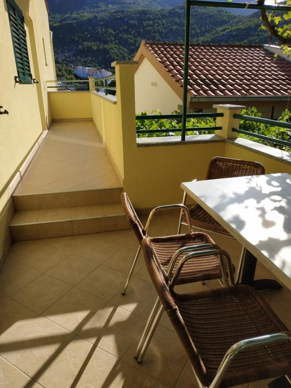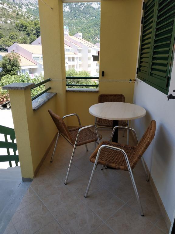 Accommodation with a great view of the mountain panorama and the center of events in Drvenik. Equipment in full comfort: small kitchen, fridge and stove. Everything you need in the bathroom. Balcony with seating. What else could you wish for!