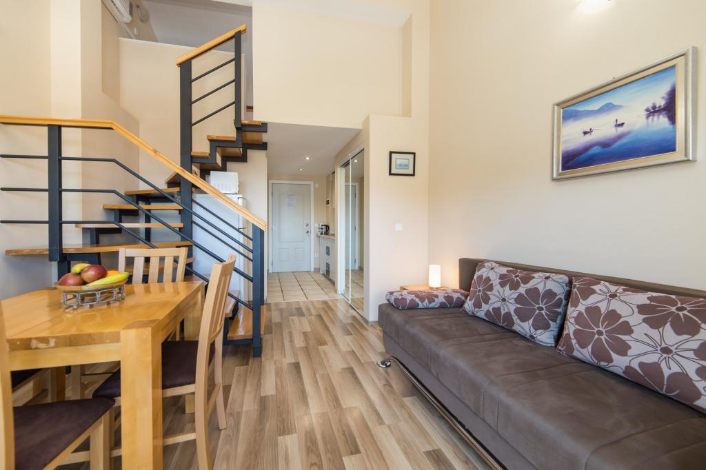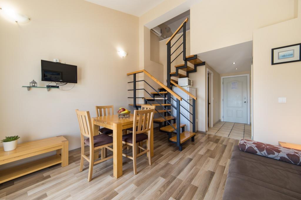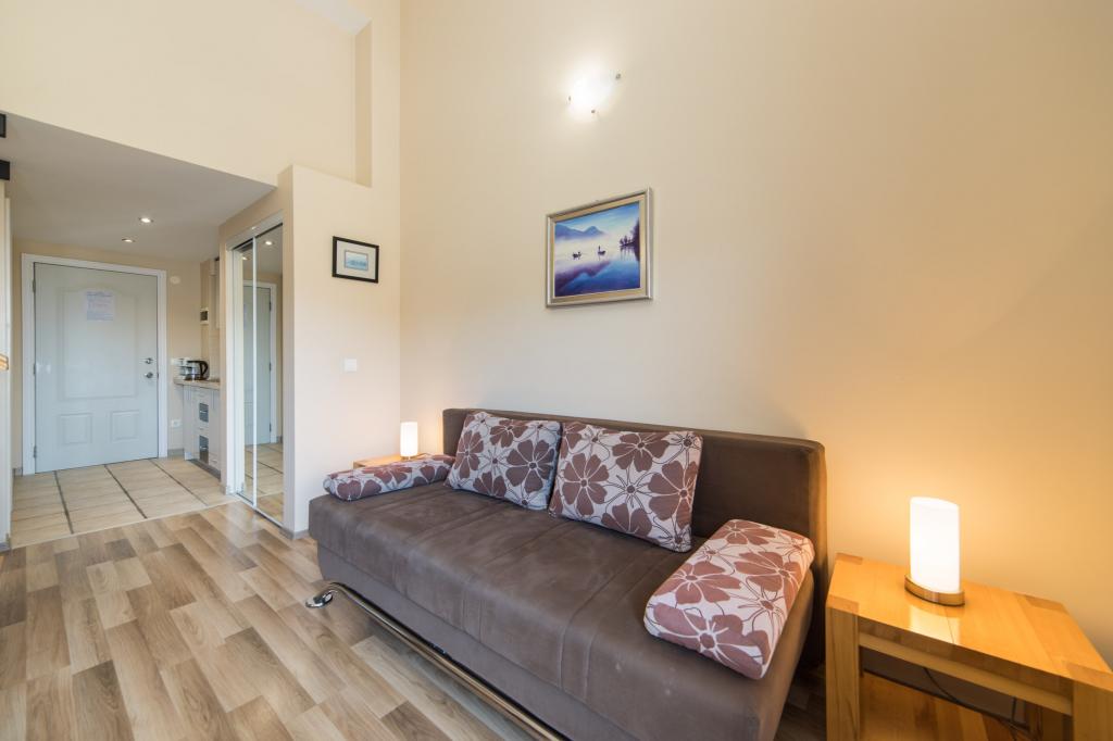 Stayed in an apartment last summer with two small children and we were very satisfied. The apartment contains everything you need for a comfortable stay, everything is new and quality, neat and clean. Matching the description of the ad. The hostess was more than pleasant, friendly, not at all intrusive. All 5 !!! The apartment is very close to the beach and center. Shops are literally a minute away. An ideal place for families with children. But if you do not like crowds on the beach, avoid the peak season.