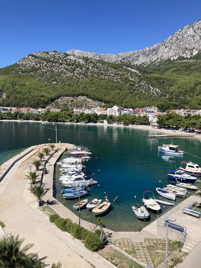 Apartment first row to the sea, beach in front of the apartment, view of the sea and the town