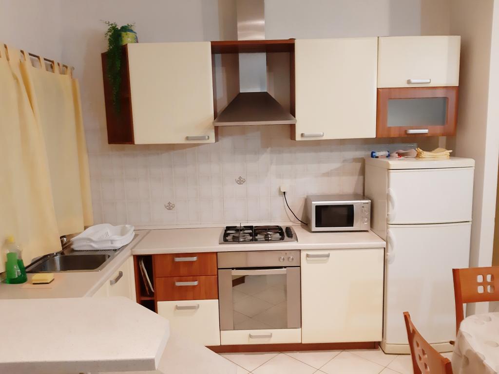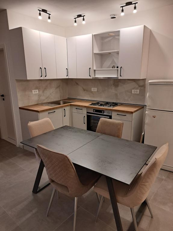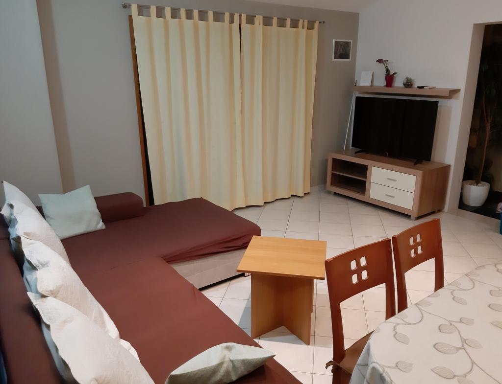 The apartments are located only 10 meters from the sea with a wonderful view of the sea, the beach and the whole town. All apartments are equipped with a TV. The apartments consist of two bedrooms, two bathrooms and a large space with a kitchen, dining room and living room.