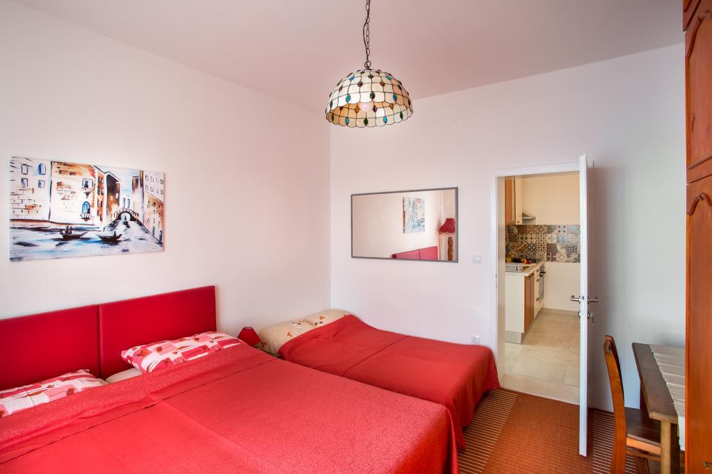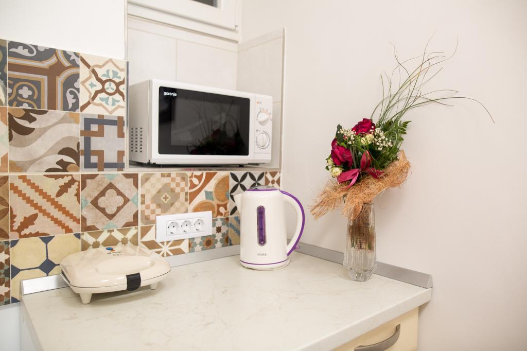 Apartment Cantabile is located in an elite part of Dubrovnik, Ploce, 8 minutes walk from the Old Town and only 200 meters from the most famous beach in Dubrovnik, Banje Beach. A supermarket is 40 meters from the apartments, as well as a bus stop, while the airport shuttle station is located on the same street 700 meters away. All cultural facilities, city walls, museums, galleries, restaurants and clubs (Banje and Revelin) are located within a short walk. Both apartments are fully equipped, have a double bed and a sofa (it is possible to separate one double bed), a fully equipped kitchen and a bathroom with a washing machine. The upper apartment has a terrace with deck chair, set and a beautiful view of the city and the island of Lokrum. The lower apartment is located on the ground floor, at road level, without outside space, fully equipped kitchen and bathroom. It is especially suitable for young people or those who want comfortable accommodation in the elite part for an affordable price, and they are suitable for an active vacation and a soft bed after spending time.