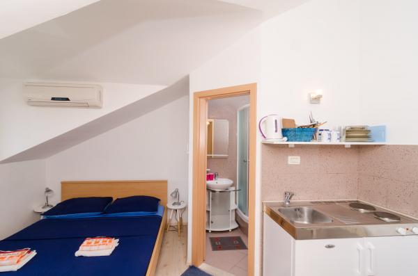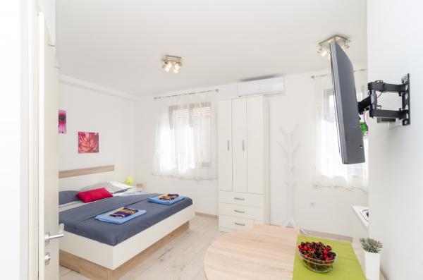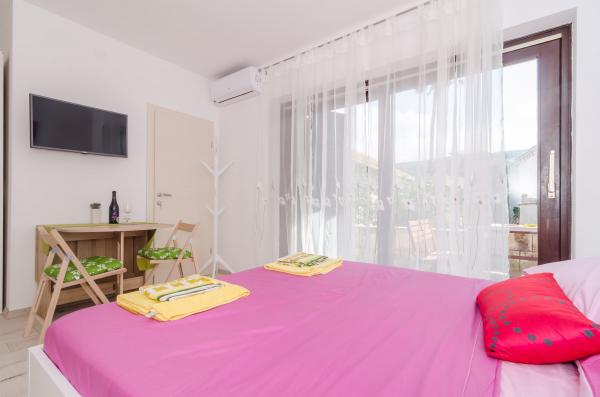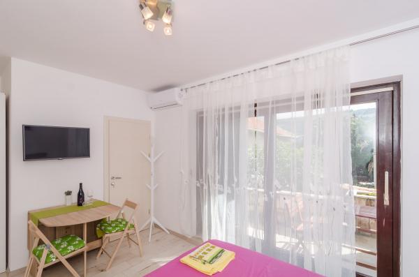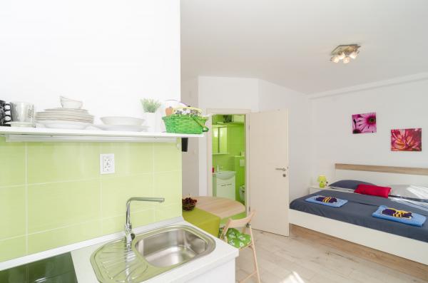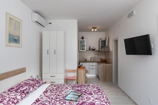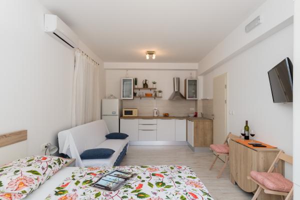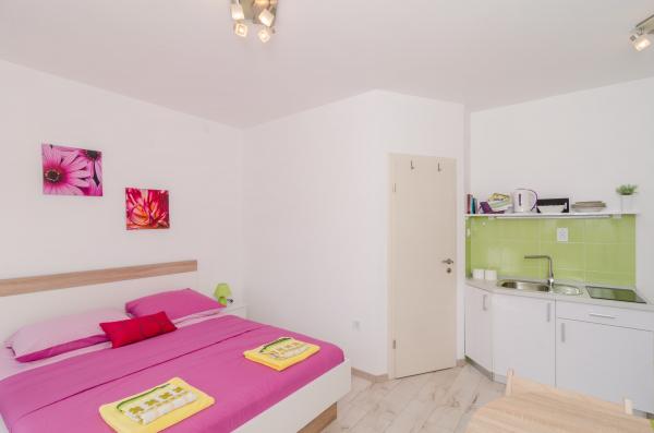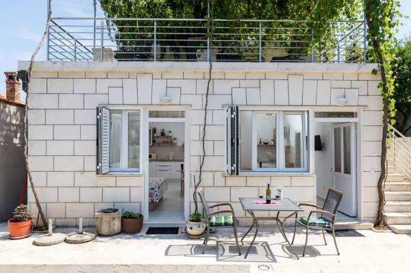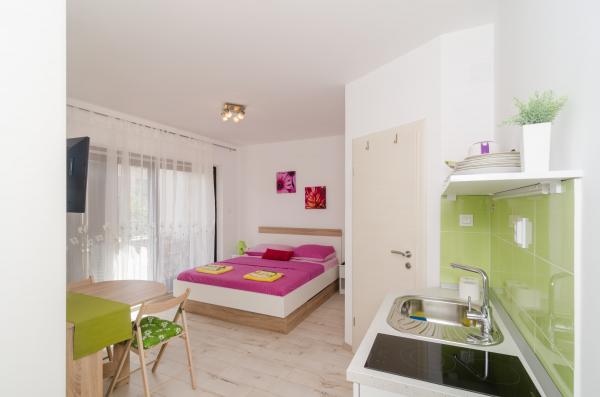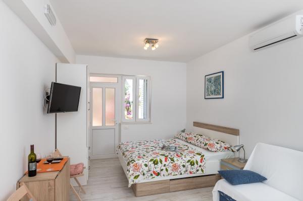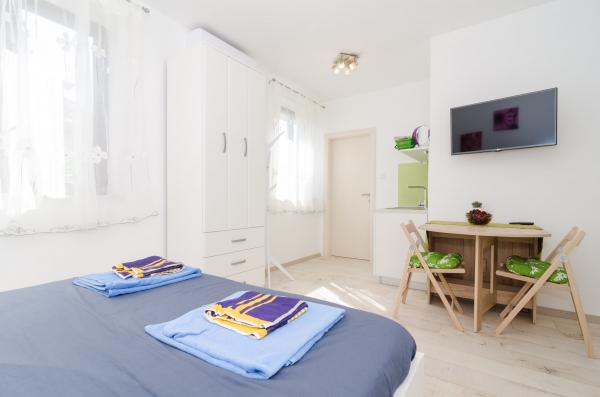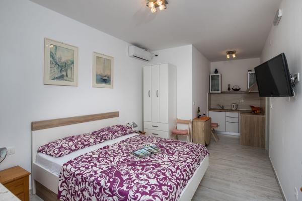 Complex of 9 studio apartments for two persons and one studio apartment for 3 persons in a quiet and beautiful part of Dubrovnik, in the area of Babin Kuk / Lapad. The facility is located 10-15 minutes by bus from Stradun and only 5 minutes by foot from the center of Lapad. Several beautiful beaches are just a 5-minute walk away from the apartments. All apartments are fully and newly decorated, each with its own private entrance, kitchen, bathroom, internet and TV. Guests have access to a large terrace and grill, and private parking is free of charge and available depending on the capacity (reservation is required).
