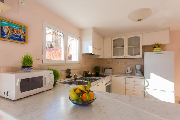 Renovated 15th Century Villa is located in the very center of the old town. It consists of 150m2, 3 bedrooms, 2 bathrooms, living room, kitchen, terrace with beautiful views of the old town, church, walls and sea. Close to everything you can visit museums, workshops, churches, restaurants, beaches.