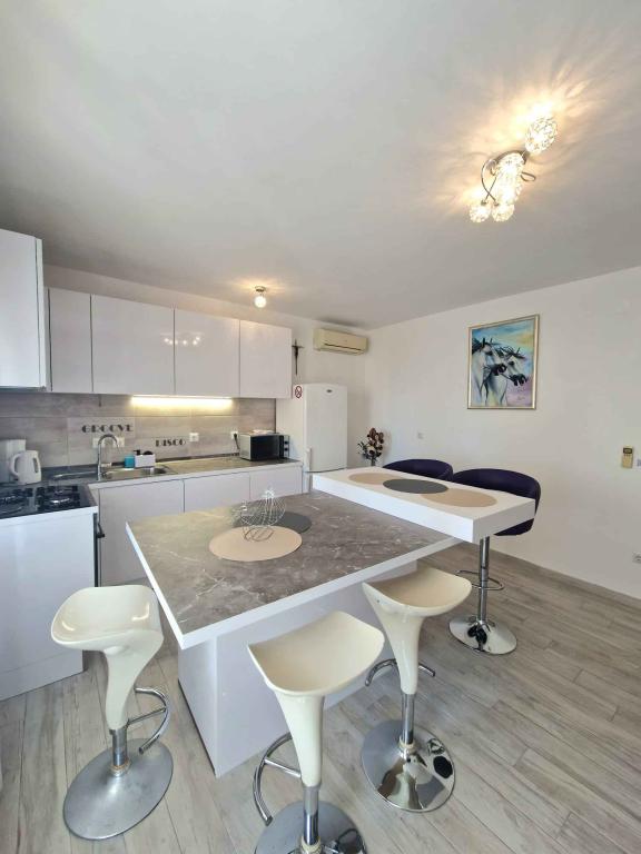 Dizma apartments provide complete relaxation, they include a heated pool with counter-current swimming and hydromassage with showers for relaxation, a fitness room for relaxation, a billiards room with a mini-cafe bar, TV, SAT, DVD music for relaxation, darts, aromatic Finnish and Turkish saunas with chromotherapy, as well as a barbecue with a mini kitchen, as well as a space for socializing. Guests of dizma apartments can use the washing machine and dryer, organize body massages and organize other excursions, use of bicycles... by agreement with the host.