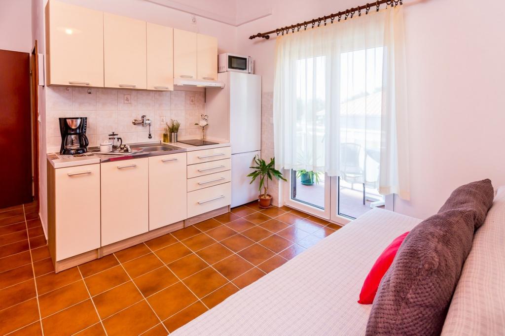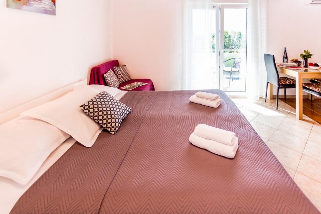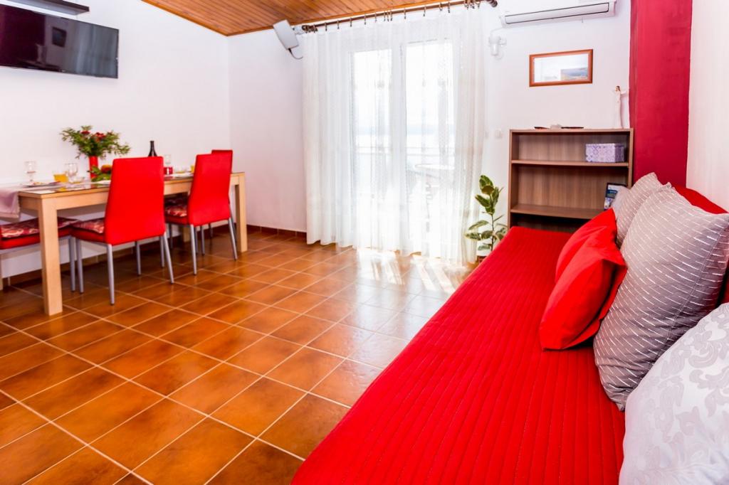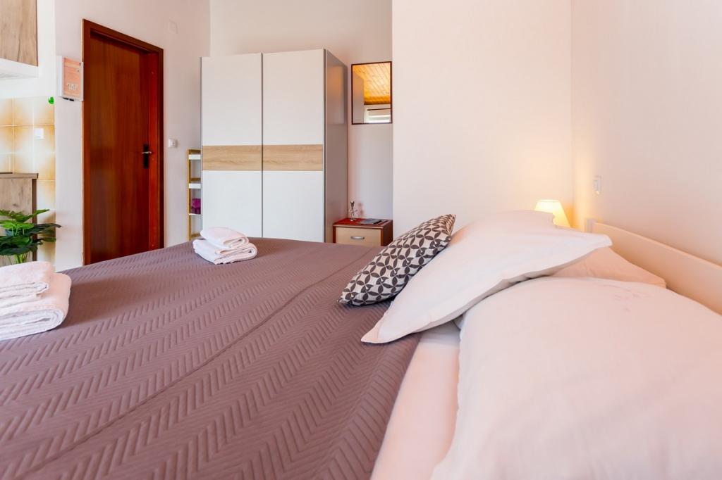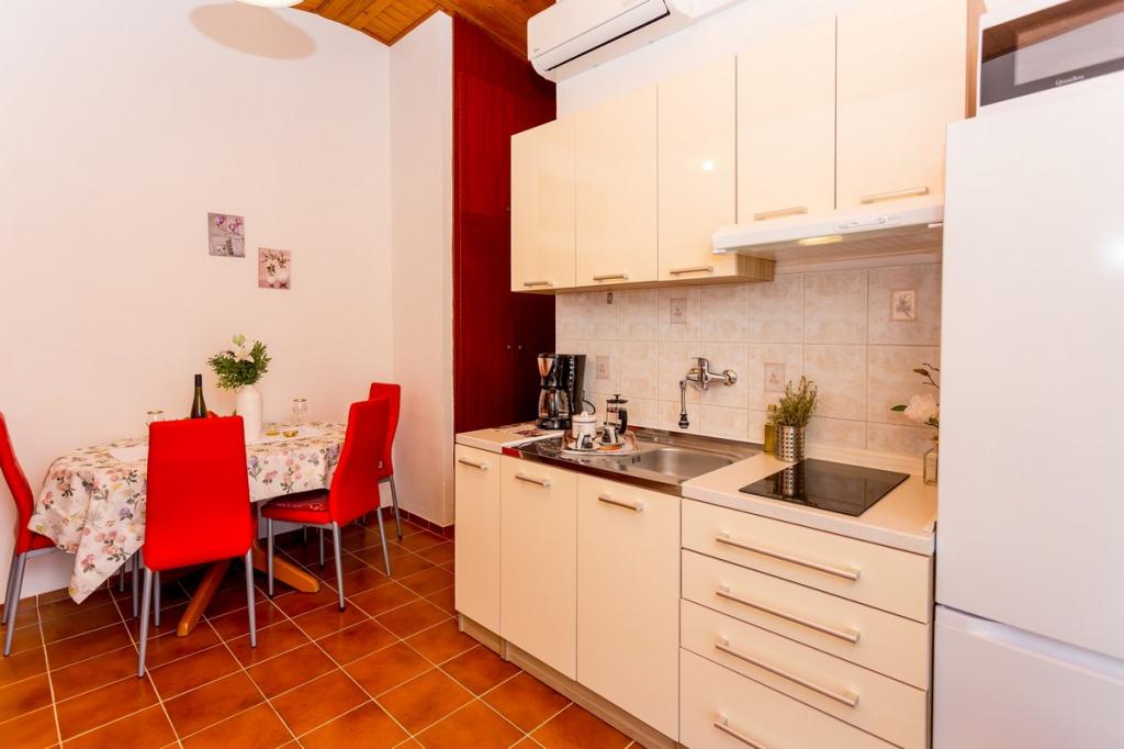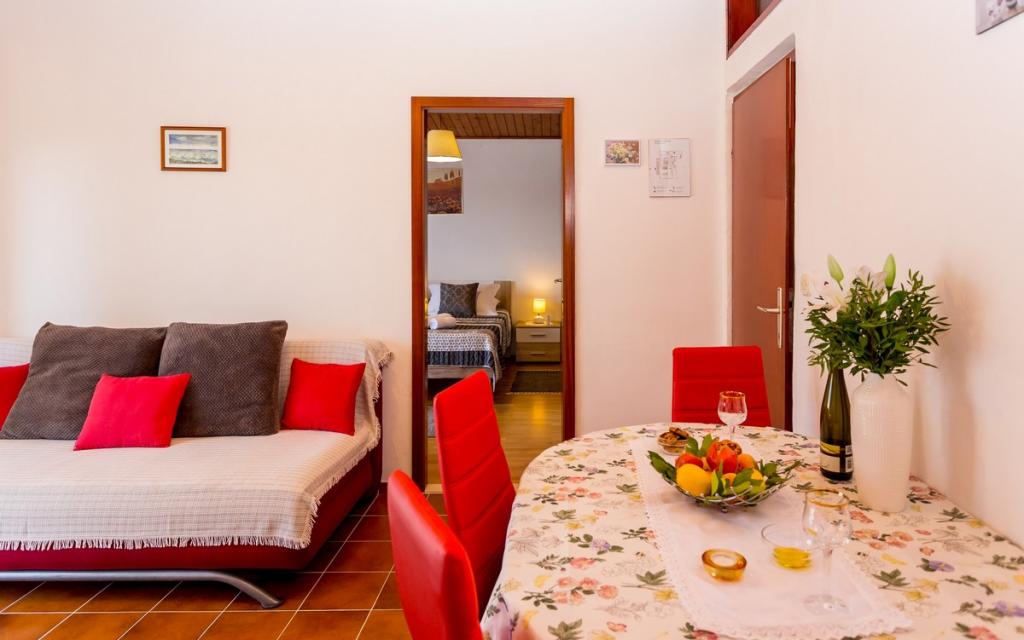 Apartments Miroslav Vojnović are located in the very center of the tourist town of Duće as part of the Split-Omis Riviera. A family house with a spacious garden and a beautiful sea view. A beautiful sandy beach is ideal for a family vacation with children. The beach is only 50 m from the house. Guests have at their disposal five comfortable and equipped apartments that provide a feeling of home while on vacation. Arrival is possible any day of the week. The apartments are available from 10 am on the day of arrival. This allows guests to stay longer, and guests can adjust their travel plan to their needs. The large apartment A5 for 4+2 people with a private terrace is located on the ground floor of the house. The other comfortable apartments A1, A2, A3 & A4 for 2 people are located on the second floor of the house and are all equipped with air conditioning. We also offer the possibility of combining smaller apartments depending on the needs of the guest. Close to larger city centers (Split 20 km, Omiš 3 km).