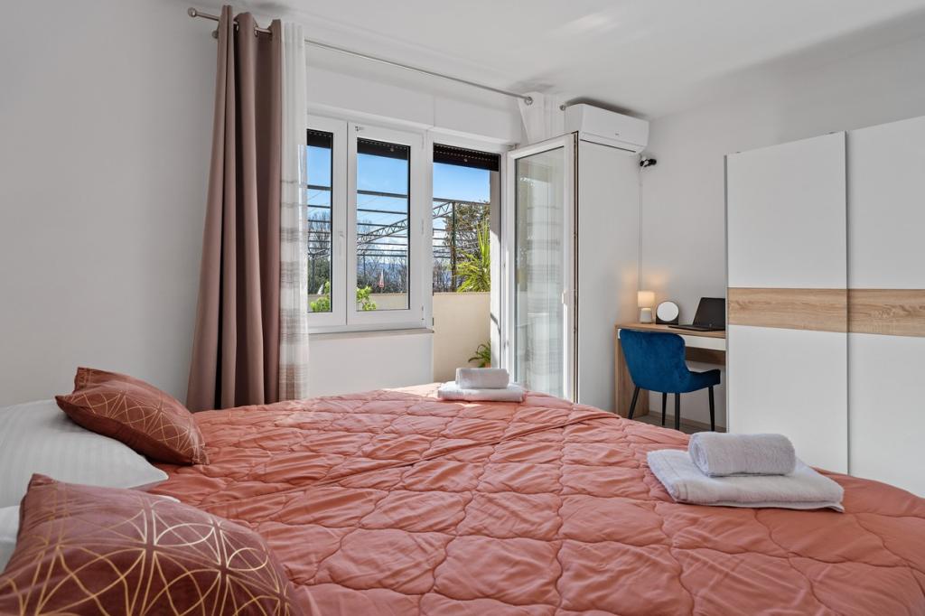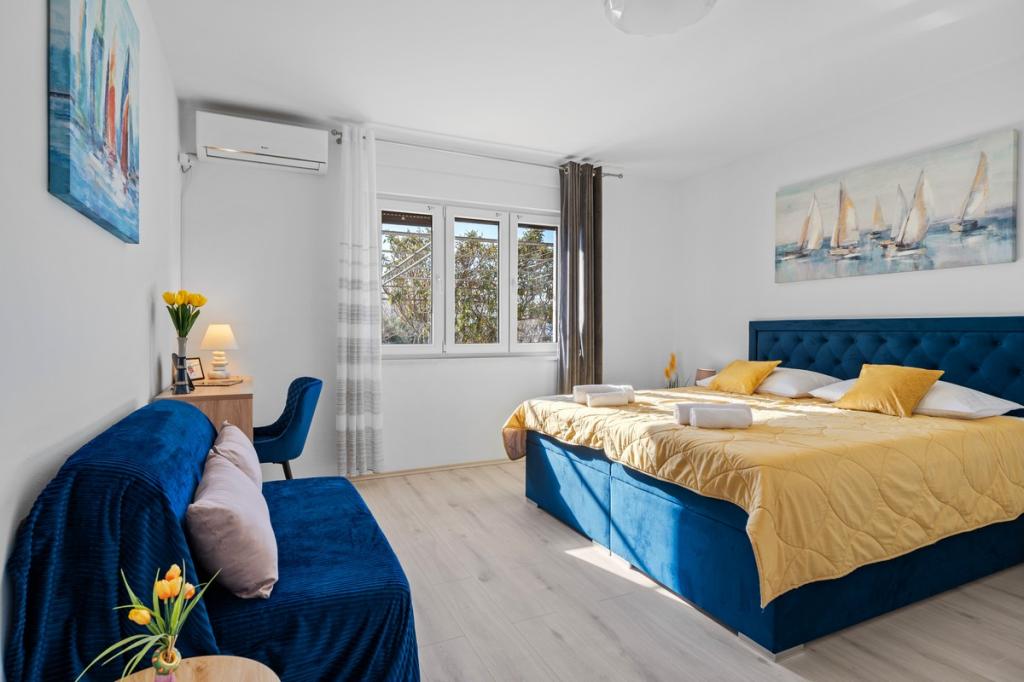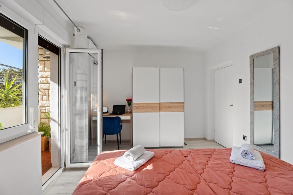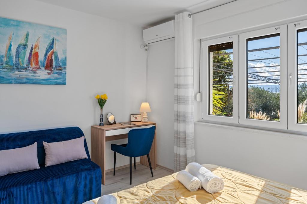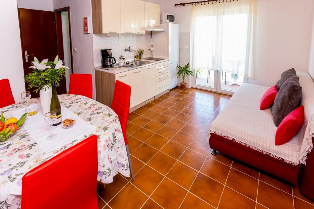 Apartments Miroslav Vojnović are located in the very center of the tourist town of Duće as part of the Split-Omis Riviera. A family house with a spacious garden and a beautiful sea view. A beautiful sandy beach is ideal for a family vacation with children. The beach is only 50 m from the house. Guests have at their disposal five comfortable and equipped apartments that provide a feeling of home while on vacation. Arrival is possible any day of the week. The apartments are available from 10 am on the day of arrival. This allows guests to stay longer, and guests can adjust their travel plan to their needs. The large apartment A5 for 4+2 people with a private terrace is located on the ground floor of the house. The other comfortable apartments A1, A2, A3 & A4 for 2 people are located on the second floor of the house and are all equipped with air conditioning. We also offer the possibility of combining smaller apartments depending on the needs of the guest. Close to larger city centers (Split 20 km, Omiš 3 km).