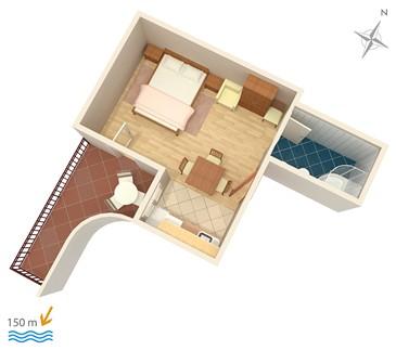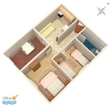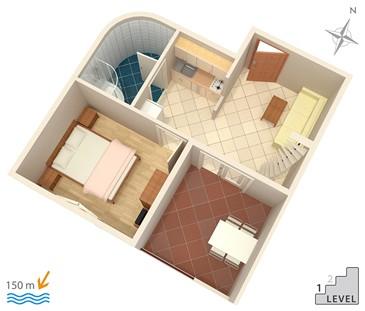 House in a quiet cul-de-sac without traffic. We are 150m away from the beach. The beach is sandy, with a large shoal, ideal for children. The center of Omis is a 15-minute walk away and Split is 25km away.