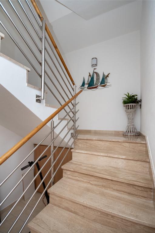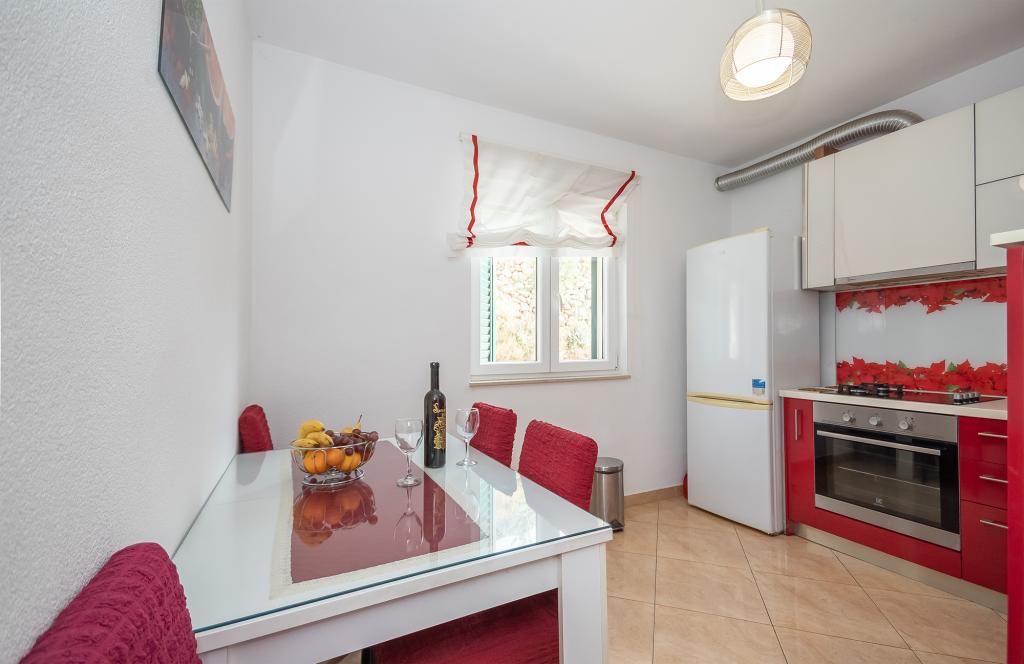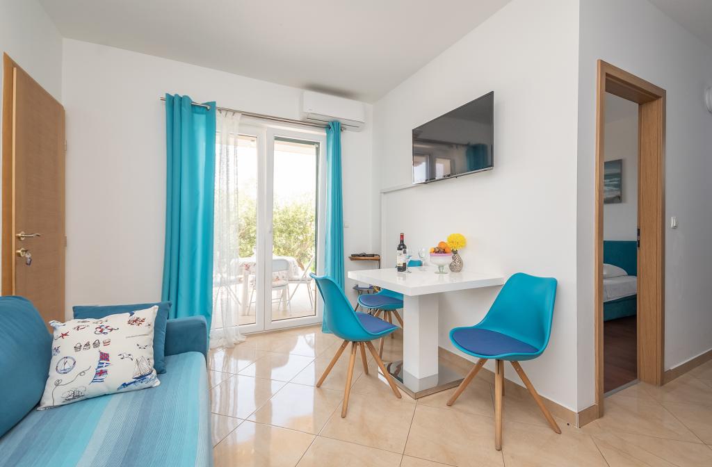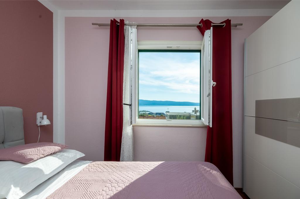 Apartments Rejo are situated in a small town of Dugi Rat, in a peaceful surroundings with beautiful panoramic view over the sea and island Brac. All tourist facilities are less than 400m away from the house. There are 2 apartments for rent. Each apartment is suitable for 4 persons, preferably 2 adults and 2 children. Both apartment are placed at the 1st floor of the house. Each of them with 1 double bedroom and 2 extra beds (pull out sofa) in the living room, a kitchen, a bathrooms and a balcony with a sea view.