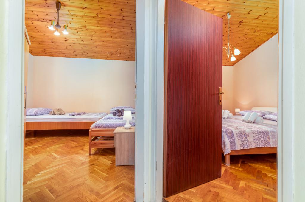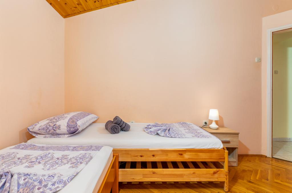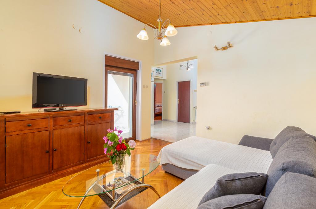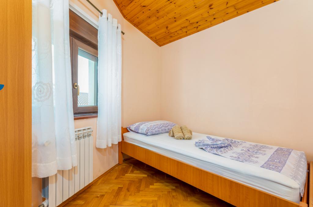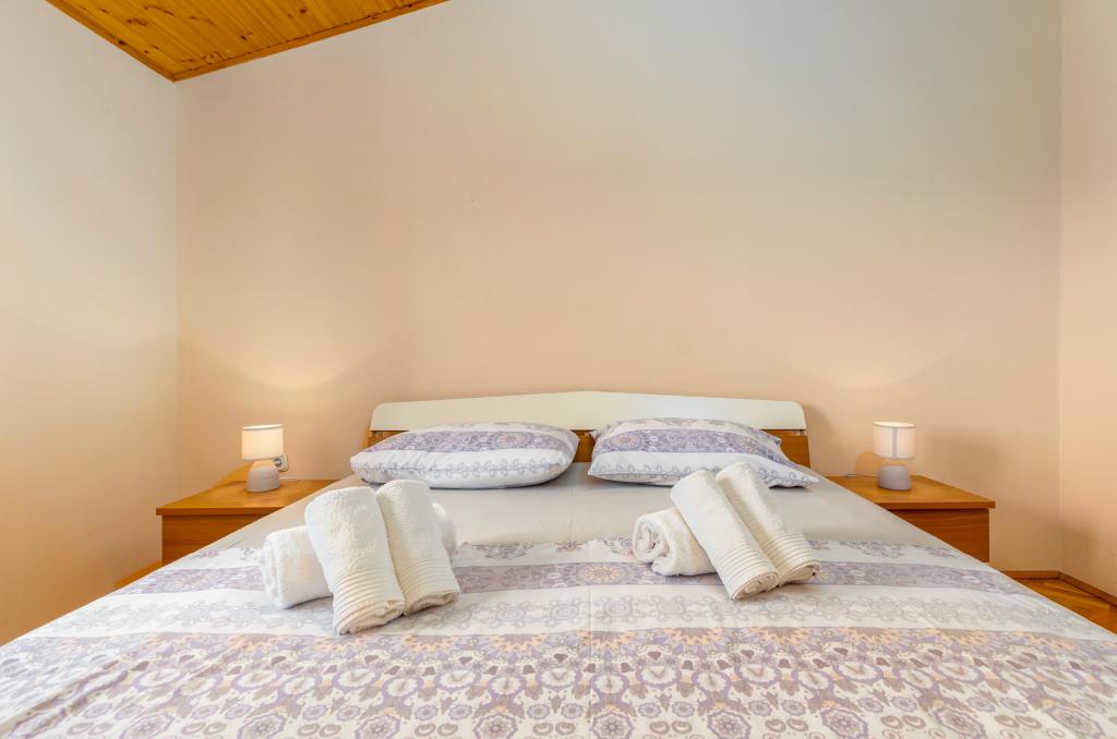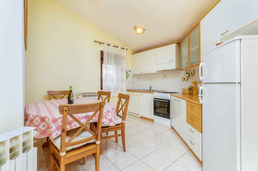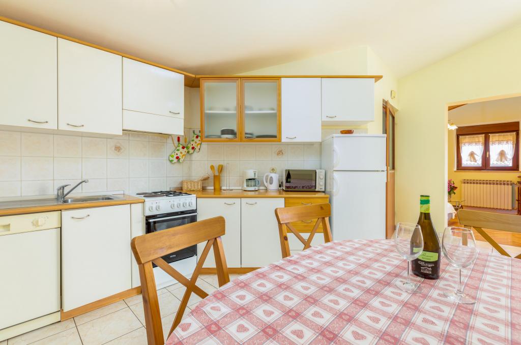 Fully and modernly equipped and spacious holiday apartment in a quiet part of Valbandon. The apartment has a bedroom with a double bed, a bedroom with 2 single beds, a kitchen with a dining room, a living room, a bathroom and a nice large terrace. It is located on the first floor of the family house where we live and has a separate entrance.