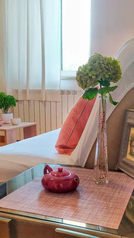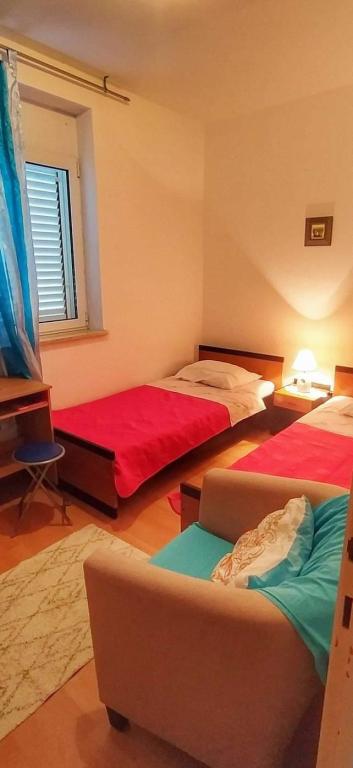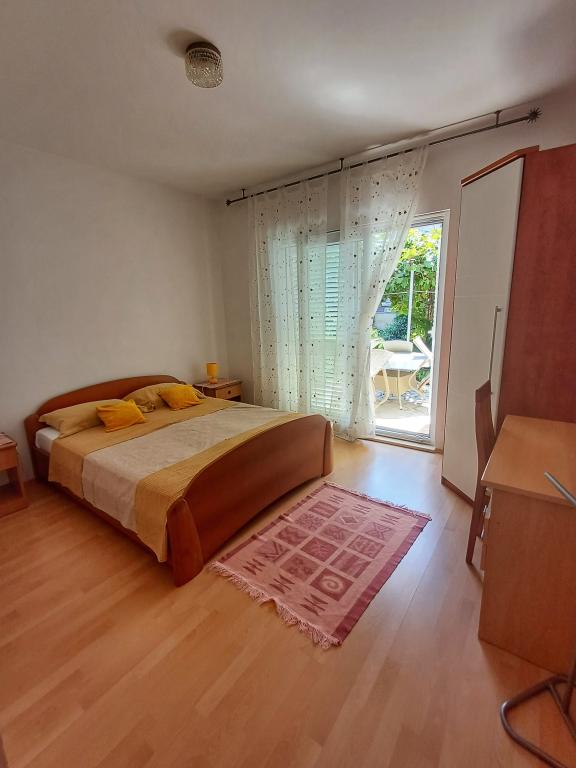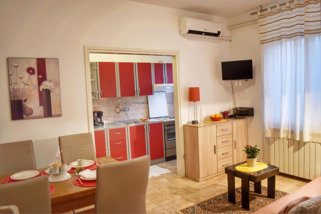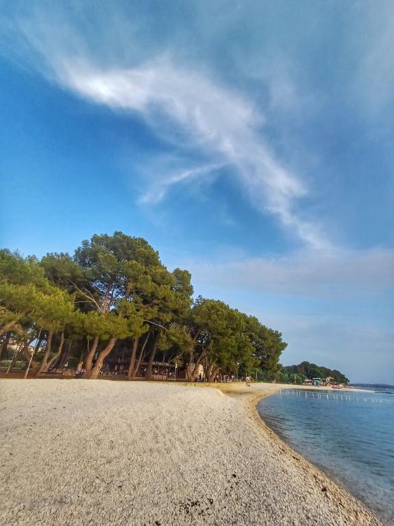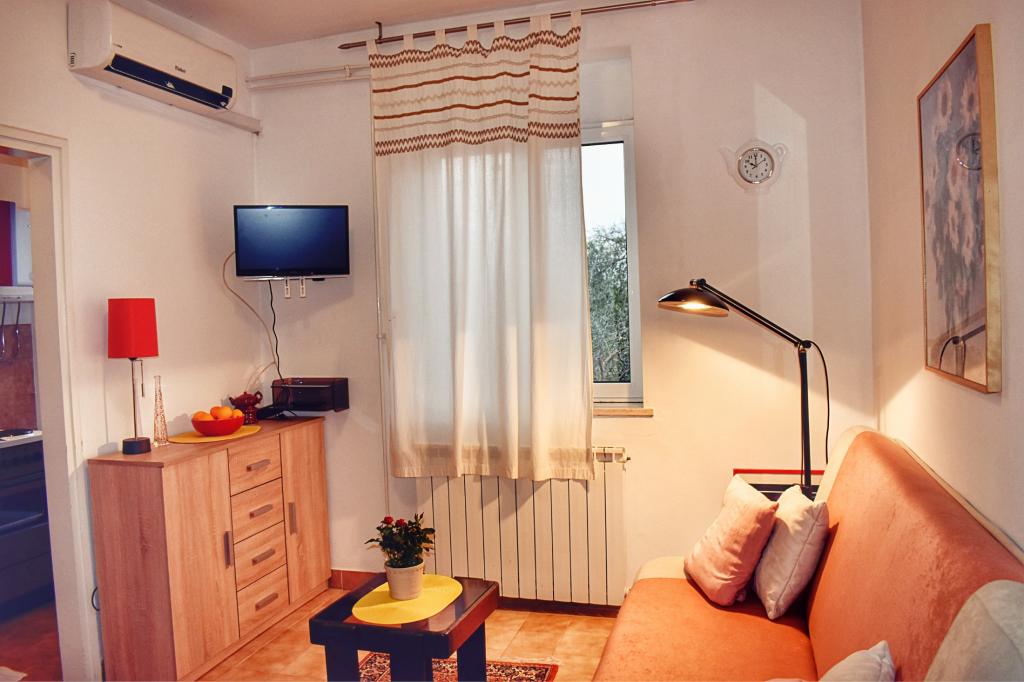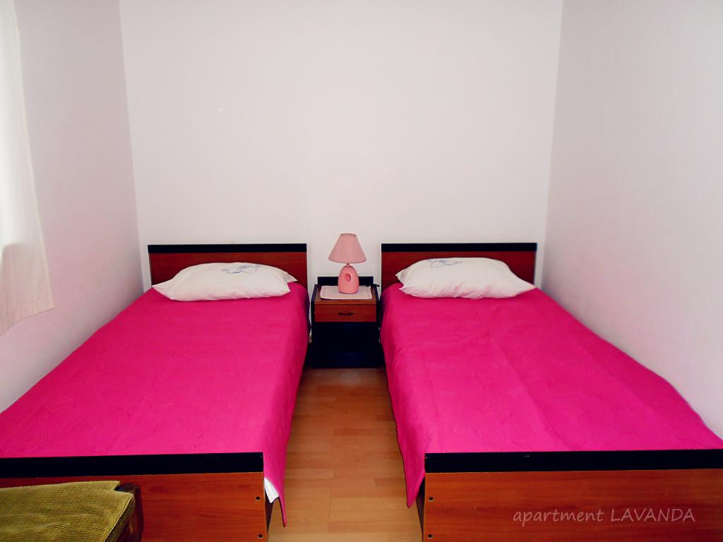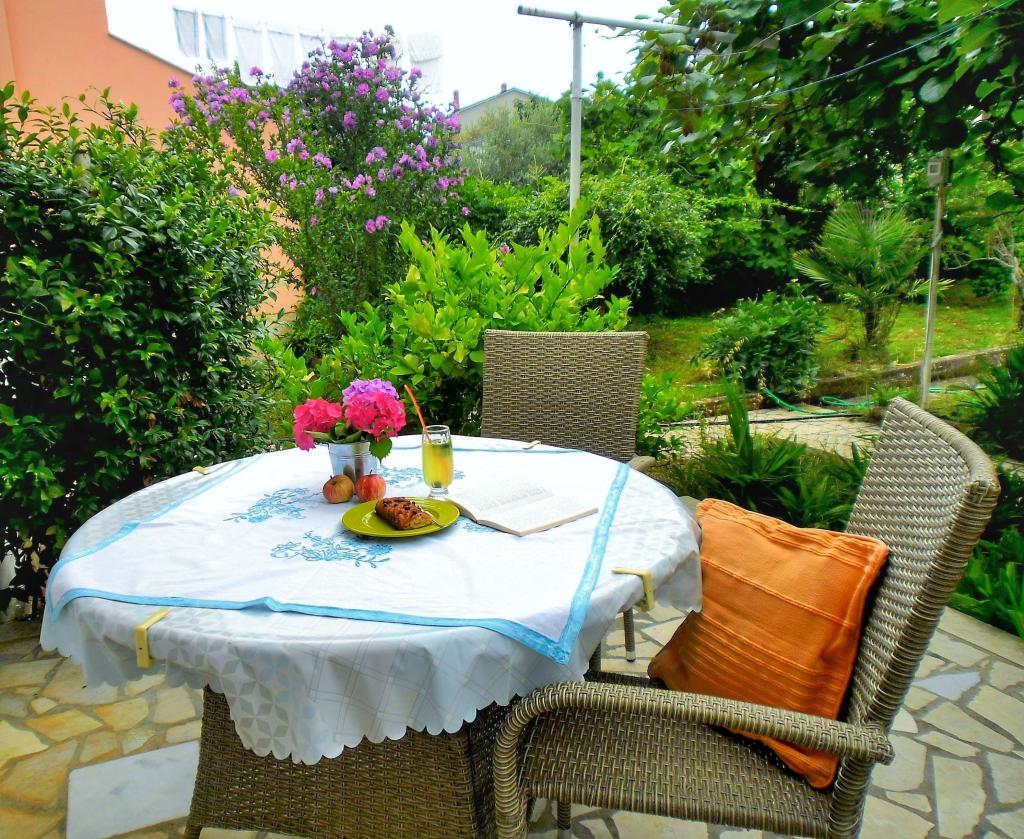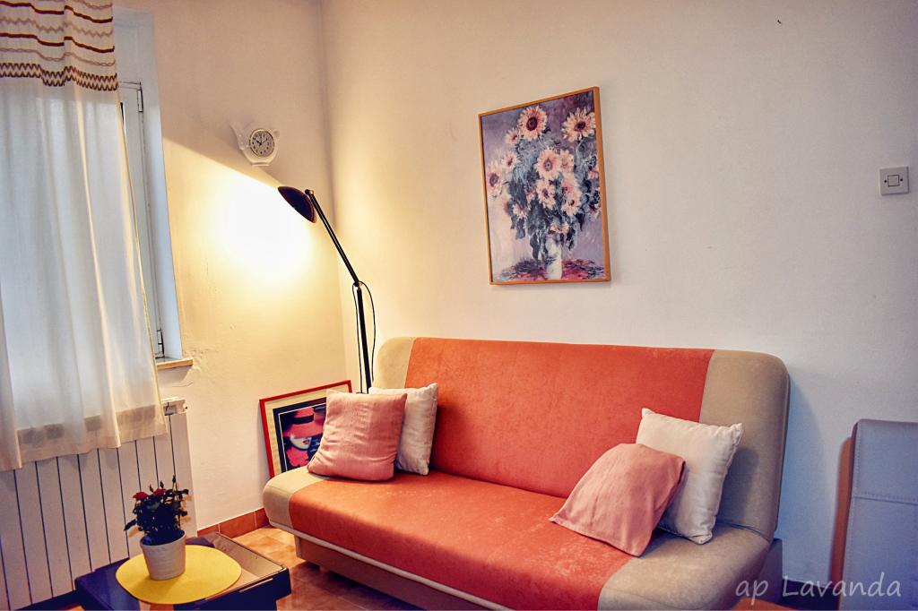 Apartment Lavanda 18 is located in a quiet area in the village of Valbandon. It is 850 m from the sea and 2 km from the center of Fažana. You need 15 minutes on foot to the nearest beach with natural shade and a promenade. The apartment is located on the ground floor of a family house surrounded by greenery and a large yard (ideal for children's play and rest and relaxation with a barbecue). In the yard there is also a private parking lot with natural shade (for 2 cars). The apartment has a private entrance and offers accommodation for up to 4 people. It consists of: hallway, bedroom with double bed, bedroom with 2 single beds, bathroom, kitchen, dining room, living room and large terrace. The kitchen is fully equipped (stove with oven, kitchen hood, refrigerator with freezer, dishwasher, microwave, kettle, coffee maker, blender, juicer, enough dishes for preparing and serving food. Other amenities: satellite TV, WiFi, two air conditioners, desk for a laptop