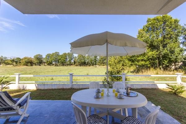 These comfortable apartments are located in the village Valbandon impasse providing guests a quiet holiday. Each unit is equipped with modern furniture and has its own terrace. Take a walk to the beach and swim in the crystal clear waters. Visit the nearby town Fazana and taste local specialties in one of the many restaurants that stretch along the coast. Visit the Brijuni National Park, which will delight you with natural beauty.