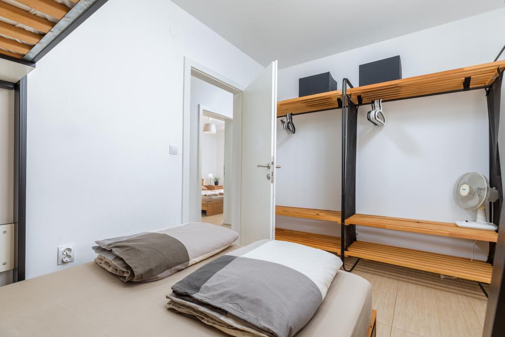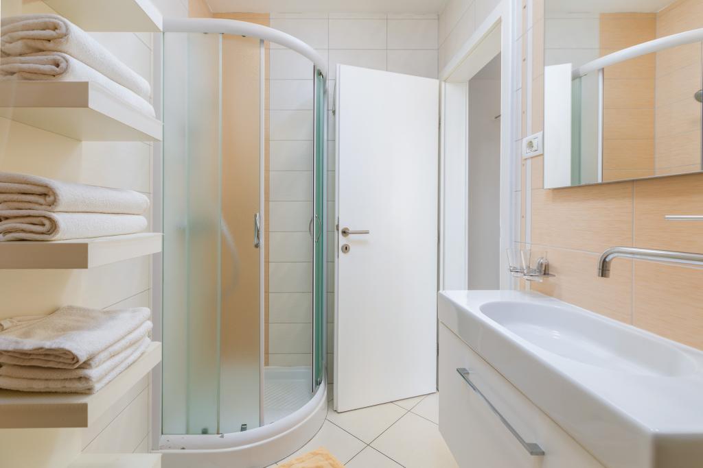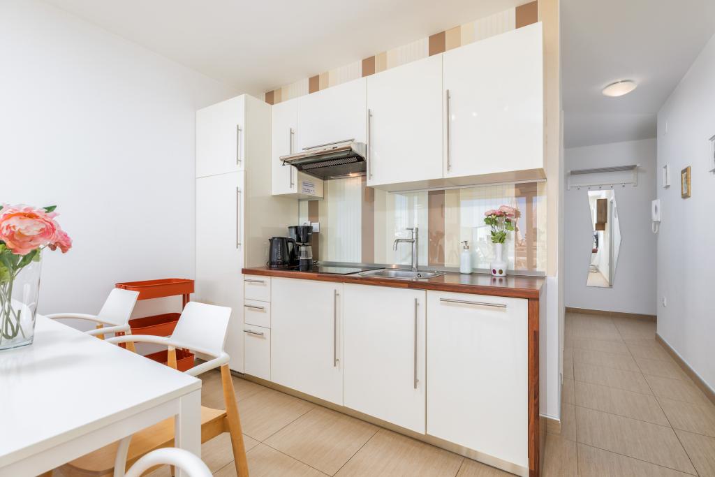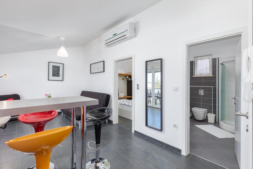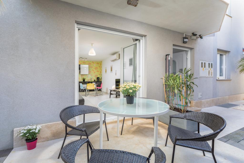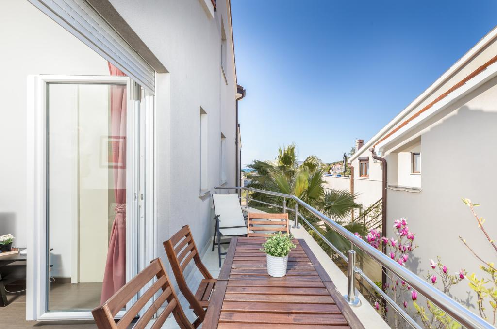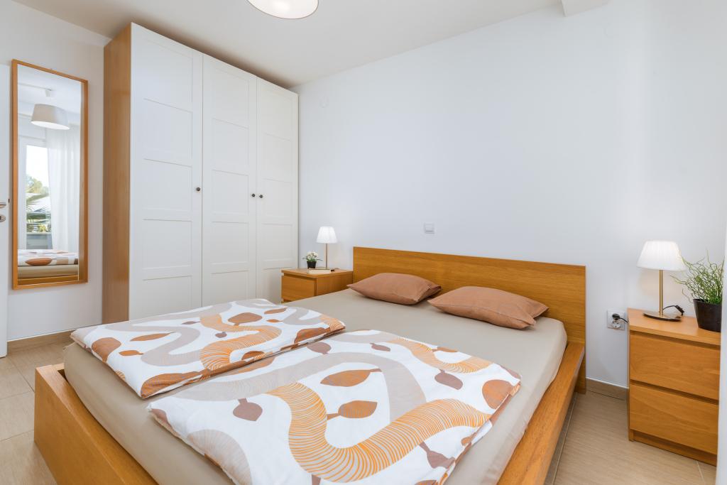 We haven't been in such a beautiful, well-equipped, stylish apartment for a long time. At every turn, it can be seen that the owner has thought of all the little things that everyone needs to enjoy this apartment. Two air conditioners, all rooms have shutters, large cabinets and plenty of storage space. They even have a fire extinguisher. The bathroom has a quality shower and has an additional space heater. There were also quality towels. Kitchen, unique. A large set of quality containers and a large set of plates. Jars for every occasion and a large set of cutlery. Contains a dishwasher with dishwasher tablets. In short, the kitchen is as equipped as at home. On the terrace are all chairs, table, deck chairs and umbrellas in the same style. The apartment is as beautiful as if it had been designed by a professional interior architect. The surroundings of the apartment are also very beautiful. Each apartment has an intercom. Warmly recommended to anyone who likes to live or sleep in a beautiful and clean apartment.
