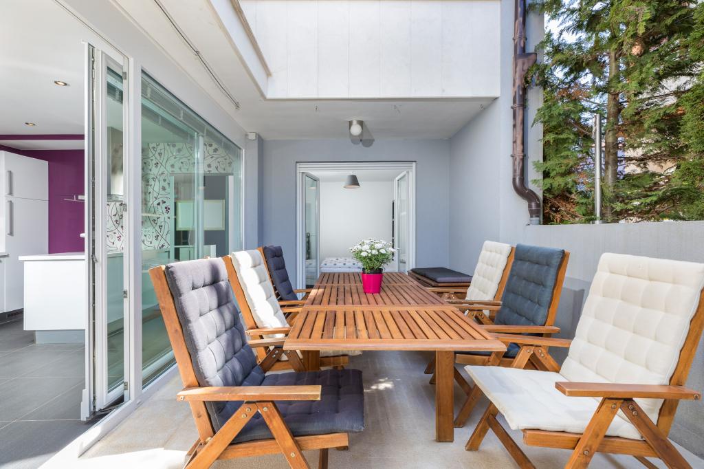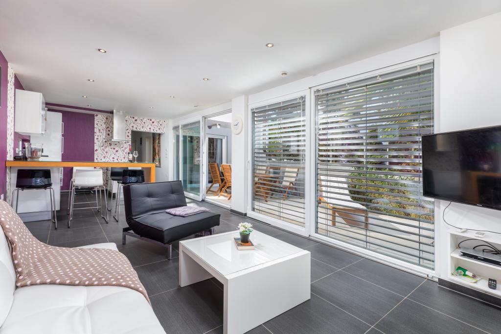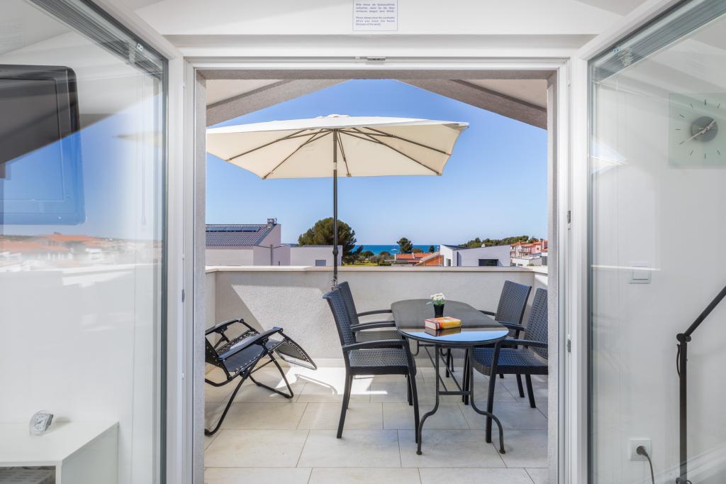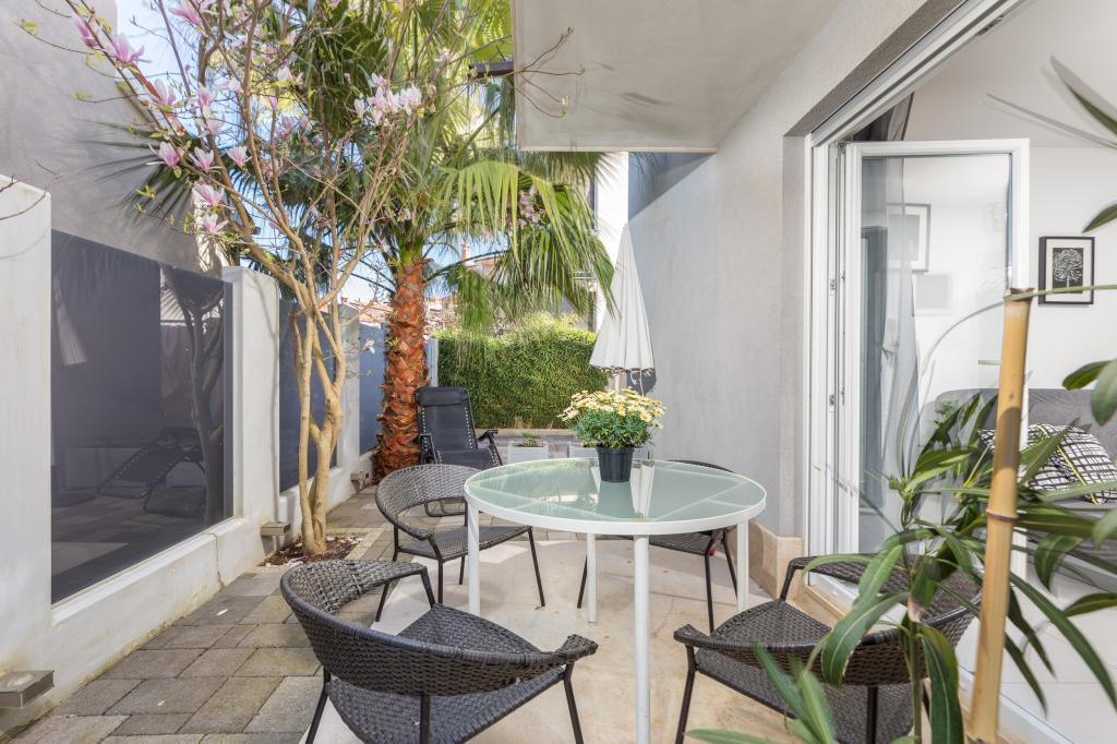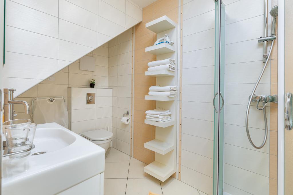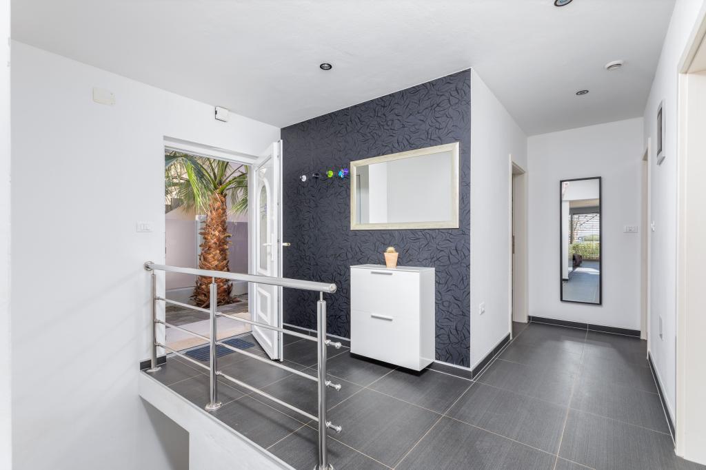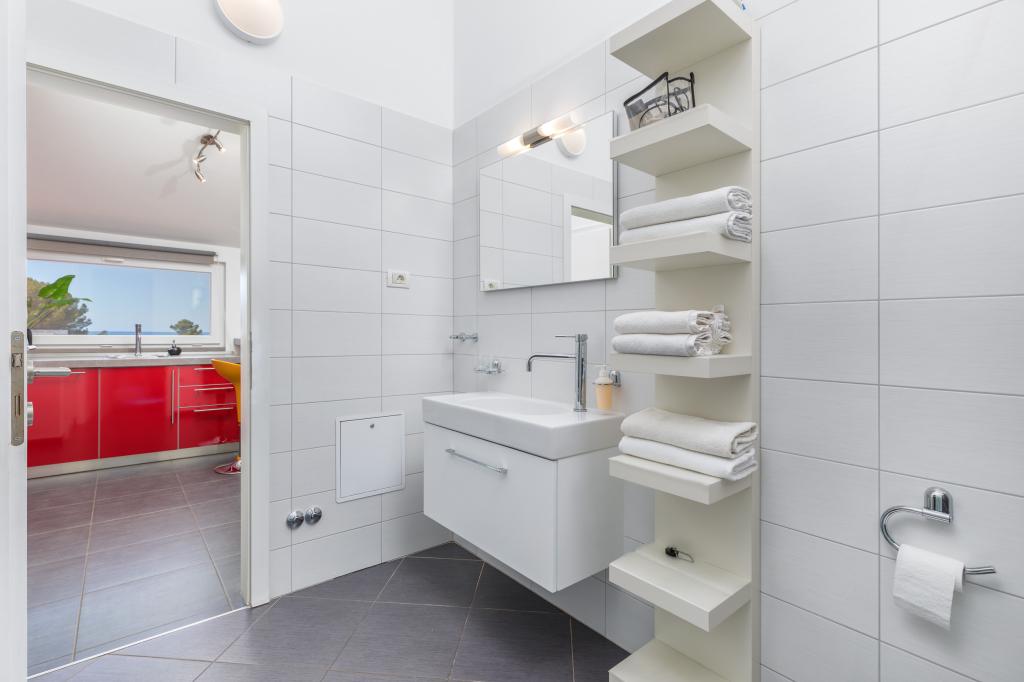 We haven't been in such a beautiful, well-equipped, stylish apartment for a long time. At every turn, it can be seen that the owner has thought of all the little things that everyone needs to enjoy this apartment. Two air conditioners, all rooms have shutters, large cabinets and plenty of storage space. They even have a fire extinguisher. The bathroom has a quality shower and has an additional space heater. There were also quality towels. Kitchen, unique. A large set of quality containers and a large set of plates. Jars for every occasion and a large set of cutlery. Contains a dishwasher with dishwasher tablets. In short, the kitchen is as equipped as at home. On the terrace are all chairs, table, deck chairs and umbrellas in the same style. The apartment is as beautiful as if it had been designed by a professional interior architect. The surroundings of the apartment are also very beautiful. Each apartment has an intercom. Warmly recommended to anyone who likes to live or sleep in a beautiful and clean apartment.