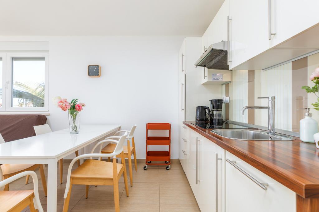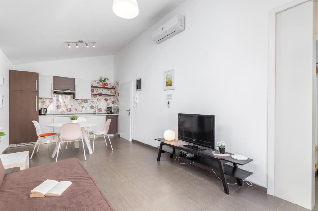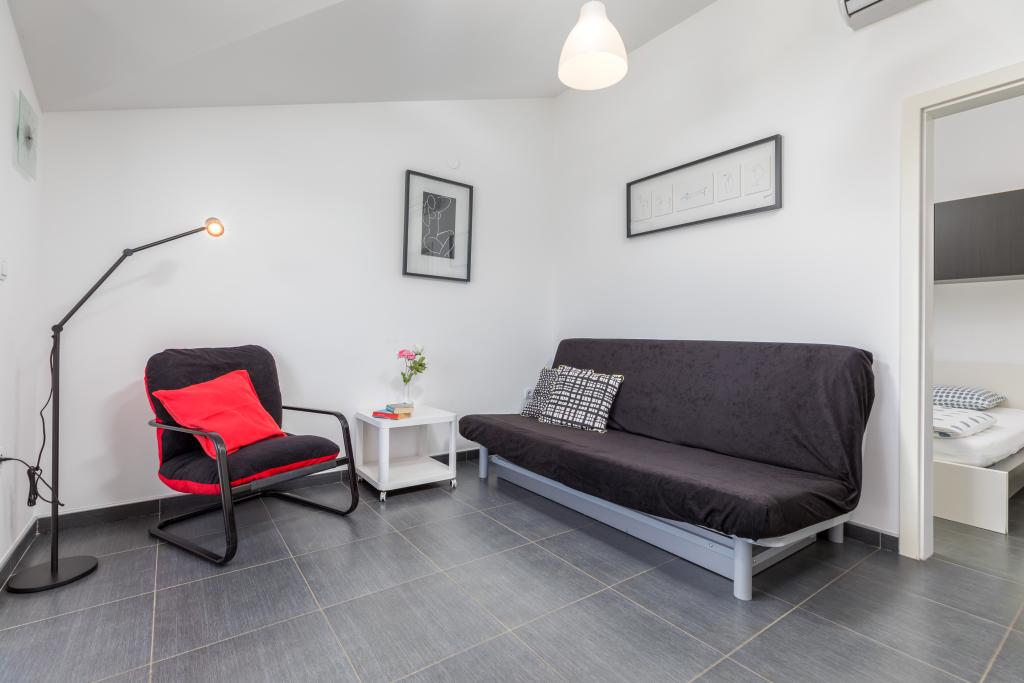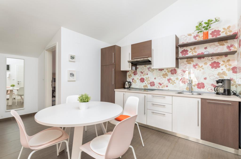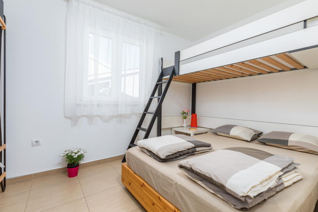 We stayed in a ground floor apartment with two small children. This is definitely the best accommodation we have ever stayed in, extremely clean and fully equipped (complete dishes and utensils in the kitchen, hand dishwashing detergent and for the washing machine, towels, etc.), including a cot and a baby feeder. The apartment is beautifully and thoughtfully decorated, with a large terrace. The owners are extremely accommodating, helpful and willing to answer any questions. Sincere recommendations for this accommodation!